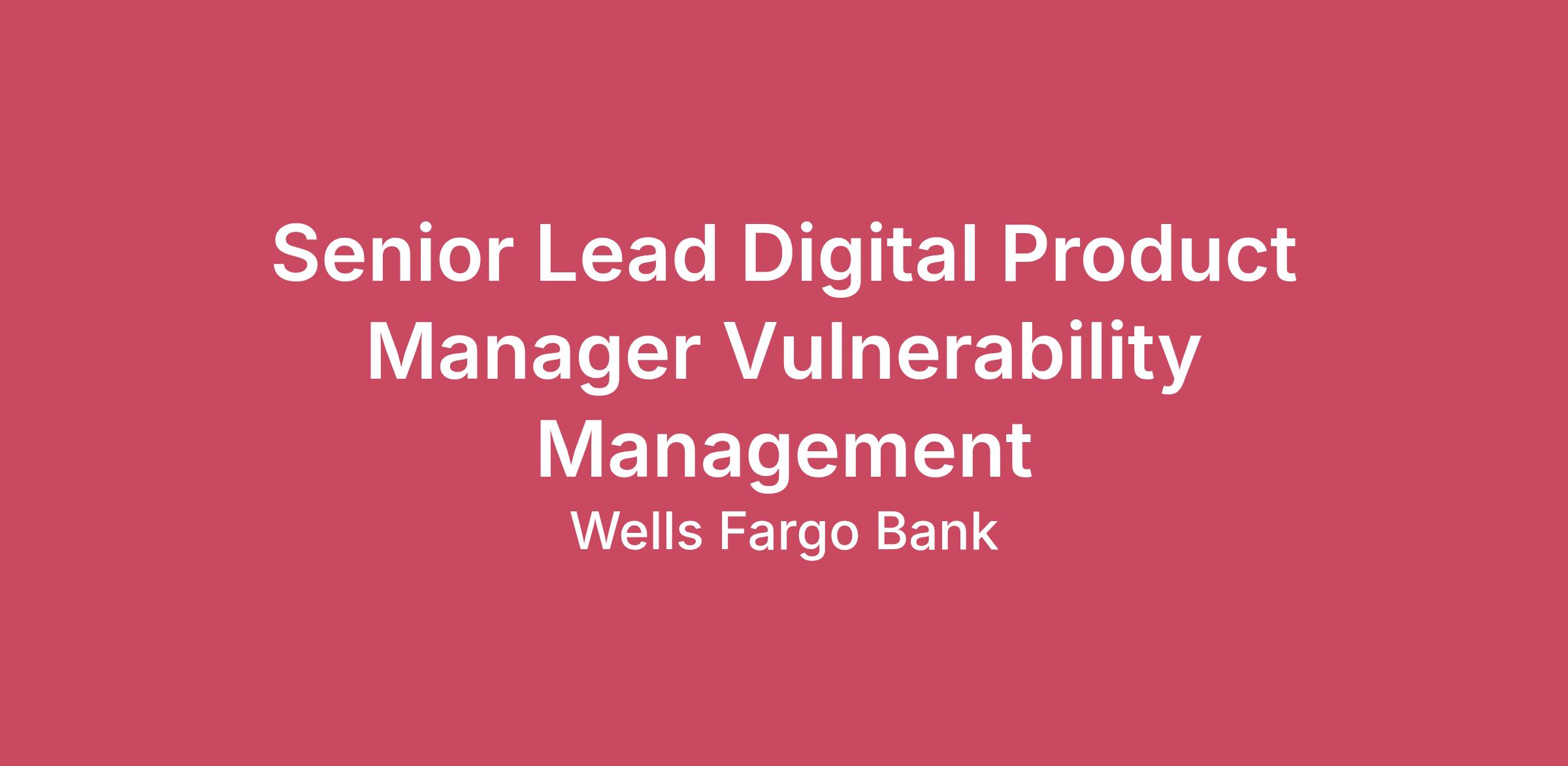 About the RoleWells Fargo is seeking a Senior Lead Digital Product Manager to serve as a Level 2 (L2) Product Owner within the Vulnerability Management (VPM) product space. This role is accountable for strategic product leadership of enterprise‑scale digital capabilities that support cybersecurity risk management across the firm.This position operates with a high degree of autonomy and responsibility and is recognized as a strategic advisor and subject matter expert. The role leads the definition and execution of the vulnerability management product roadmap, establishes standards and governance across delivery teams, and drives alignment between Product Management, Engineering, Technology, and Cybersecurity partners. The Senior Lead Digital Product Manager navigates highly complex business and technical environments, influences senior leaders, and ensures consistent delivery, transparency, and value realization across the enterprise.Key ResponsibilitiesStrategic Product LeadershipServe as a senior‑level product owner accountable for defining, maintaining, and evolving the enterprise Vulnerability Management digital product strategy and roadmapAct as an advisor to senior leadership, influencing digital product strategies, investment priorities, and long‑term objectives for highly complex and high‑risk initiativesLead delivery of large‑scale, long‑term digital solutions requiring advanced analytical, inductive, and creative problem‑solvingEnterprise Execution & GovernanceEstablish and enforce enterprise product standards, including feature definition, dependency management, work classification (CTB/RTB), time tracking, and delivery status reportingChampion SDLC automation, process standardization, and reporting consistency to strengthen risk controls, transparency, and audit readinessProvide oversight and guidance for UAT planning, execution, and readiness, ensuring quality and compliance expectations are metParticipate in and influence sprint planning, backlog management, and release activities to ensure delivery aligns with strategic outcomesCross‑Functional Leadership & InfluenceLead coordination of highly complex, cross‑functional initiatives involving Product, Engineering, Technology, Security, and Operations teamsStrategically engage with leaders and professionals across the enterprise to drive alignment, clarity, and executionIdentify operational gaps and formalize processes that reduce friction, improve scalability, and enhance delivery efficiencyStrengthen stakeholder engagement models, including the Vulnerability Management front‑door intake and prioritization processRisk, Incident, and Continuous ImprovementDrive improvement of defect, issue, and incident management through established ServiceNow incident and triage processesEnsure work is appropriately traceable to intake requests, initiatives, and project identifiers, where applicableContribute to annual planning activities, tool evaluations, and assessments of emerging technologies and capabilitiesRequired Qualifications7+ years of digital product management experience, or equivalent demonstrated through one or a combination of the following: work experience, training, military experience, or educationDesired Qualifications3+ years of cybersecurity experience within a large financial institution3+ years of experience in vulnerability management and/or patch managementExperience working within enterprise SDLC, risk management, and regulatory control frameworksExperience establishing a vision, developing strategy to support the vision, and driving action towards the vision through effective management of roadmap, goals, and objectivesAdvanced level of experience including writing user stories, features, and prioritizing work to align to product roadmapProficiency with Agile frameworks (Scrum, Kanban) and tools such as JiraDemonstrated ability to lead highly complex digital products with broad enterprise impactExperience influencing senior leaders and driving outcomes in a matrixed, regulated environmentJob ExpectationsAbility to travel up to 10% of the time.Ability to work a hybrid work schedule – 3 days a week on-site/in office and 2 days a week remote.This position is not eligible for Visa sponsorshipLocationsCharlotte, NCChandler, AZMinneapolis, MNIrving, TXIselin, NJPay Range Reflected is the base pay range offered for this position. Pay may vary depending on factors including but not limited to demonstrated examples of prior performance, skills, experience, or work location. Employees may also be eligible for incentive opportunities.$159,000.00 - $305,000.00Benefits Wells Fargo provides eligible employees with a comprehensive set of benefits, many of which are listed below. Visit Benefits - Wells Fargo Jobs for an overview of the following benefit plans and programs offered to employees.Health benefits401(k) PlanPaid time offDisability benefitsLife insurance, critical illness insurance, and accident insuranceParental leaveCritical caregiving leaveDiscounts and savingsCommuter benefitsTuition reimbursementScholarships for dependent childrenAdoption reimbursementPosting End Date:9 Apr 2026*Job posting may come down early due to volume of applicants.We Value Equal OpportunityWells Fargo is an equal opportunity employer. All qualified applicants will receive consideration for employment without regard to race, color, religion, sex, sexual orientation, gender identity, national origin, disability, status as a protected veteran, or any other legally protected characteristic.Employees support our focus on building strong customer relationships balanced with a strong risk mitigating and compliance-driven culture which firmly establishes those disciplines as critical to the success of our customers and company. They are accountable for execution of all applicable risk programs (Credit, Market, Financial Crimes, Operational, Regulatory Compliance), which includes effectively following and adhering to applicable