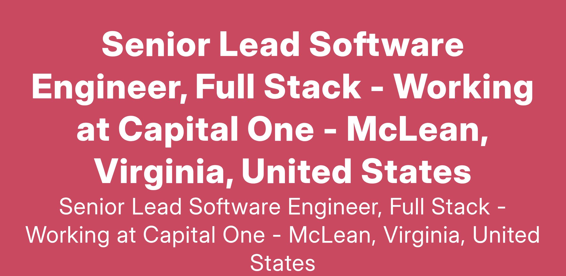 Do you love building and pioneering in the technology space? Do you enjoy solving complex business problems in a fast-paced, collaborative, inclusive, and iterative delivery environment? At Capital One, you'll be part of a big group of makers, breakers, doers and disruptors, who solve real problems and meet real customer needs. We are seeking Full Stack Software Engineers who are passionate about marrying data with emerging technologies. As a Capital One Senior Lead Software Engineer, you’ll have the opportunity to be on the forefront of driving a major transformation within Capital One.