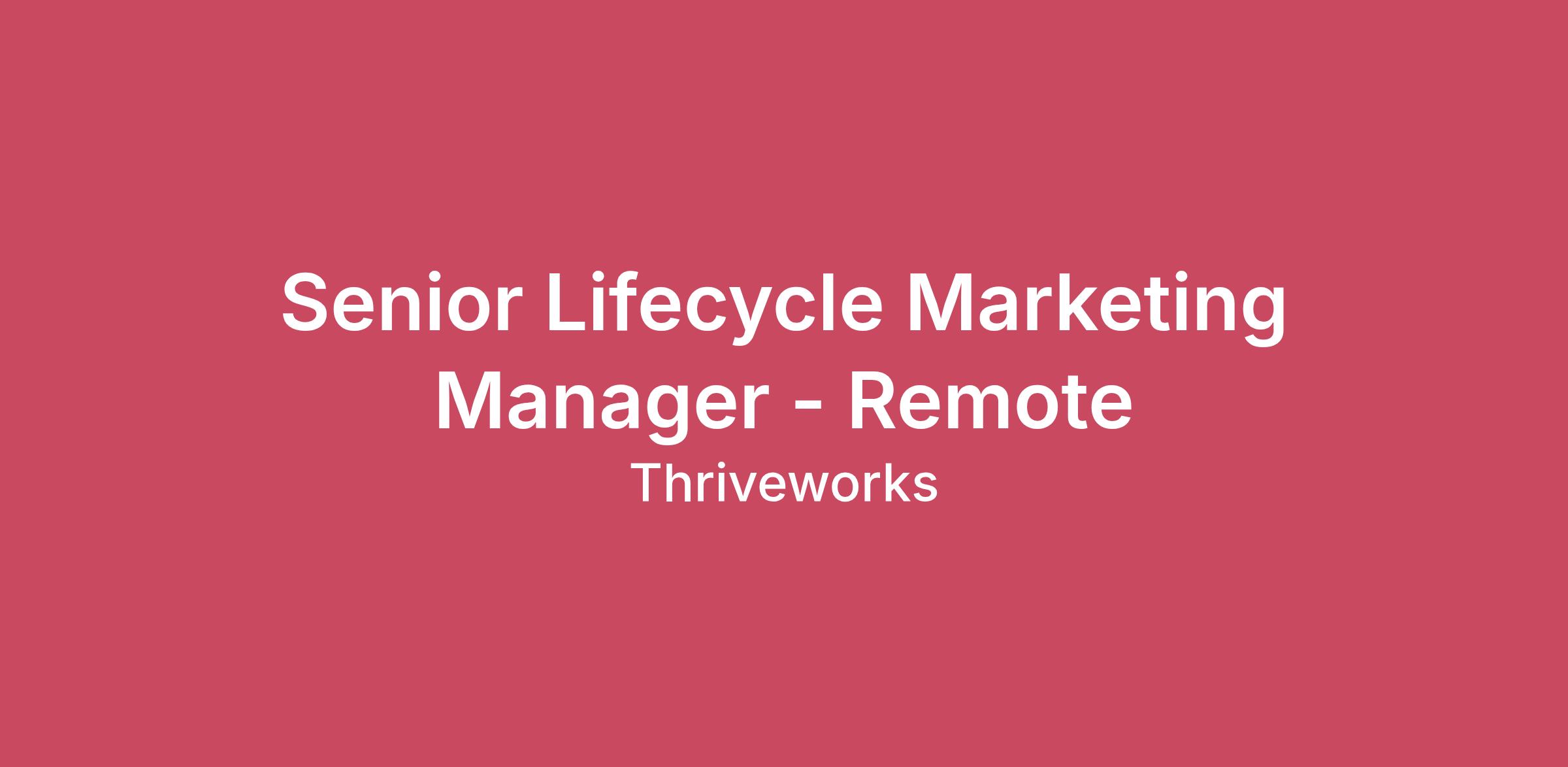 Senior Lifecycle Marketing Manager - Remote About Thriveworks Thriveworks is one of the leading mental healthcare companies in the USA, with over 2,800 employees, founded by and still led by clinicians. We have recently launched a new vision to become America’s most valued mental healthcare company—where our teams can fulfill their purpose and do their best work, where clients are treated with warmth and respect, and where communities benefit from access to high-quality care that helps them heal and thrive in life. Thriveworks is committed to providing accessible, top-tier mental health services through a network of licensed therapists and mental health professionals. As we enter this exciting new chapter, our mission remains focused on helping people live happier, healthier lives through both in-person and online counseling services.About the Job We're looking for a Senior Lifecycle Marketing Manager to join our marketing team, someone who sees communication as both craft and lever. This is a high-visibility, cross-functional role that sits at the intersection of strategy and execution, partnering closely with leaders across operations, clinical, data, product, and content to build communications that actually move the needle.You'll use lifecycle communications to bridge client experience and business outcomes by designing purposeful touchpoints that drive revenue, deepen engagement, and improve LTV across every stage of the client journey. If you believe great messaging can create lasting relationships, this role was built for you.Compensation: $120,000 - $155,000 with bonus potentialWhat success looks likeYou bring range: the organizational discipline to manage multiple workstreams without dropping a ball, and the creative instinct to care deeply about how a sentence lands. You hold both the strategy and the details and know when to zoom out and when to sweat the copy. You thrive in collaborative environments and aren't just comfortable leading cross-functional conversations, but you actively seek them out to drive toward a shared goal.You love a good process, and you love improving one even more. You're nimble, proactive, and honest about what's working. You don't wait to be handed a playbook — you help write it.You'll thrive here if you areHighly organized // Juggling is your baselineDetail-oriented // Nothing slips through the cracksA clear communicator // In writing and in the roomCollaborative // Cross-functional by defaultProcess-driven // And always improving itA natural leader // Who gets things done Your Background You've worked on lifecycle or CRM campaigns that made a real difference. You’ve worked on campaigns that lengthened retention, deepened engagement, or turned good clients into loyal ones. You understand the mechanics of email and SMS, and you know how to tie them to a larger strategic story. Bonus points if you've operated in healthcare, health-tech, or another high-compliance environment where thoughtful communication isn't optional.Past colleagues would probably describe you as creative, strategic, dependable, a go-getter, and a clear leader. Key Responsibilities Define the lifecycle marketing roadmap from acquisition through retention and drive execution against it. Build segmented, personalised campaigns across email, SMS, and direct channels: track CAC, ROI, and LTV to optimize performance. Lead working sessions with product, analytics, creative, and clinical teams to align on priorities and timelines. Design and run A/B tests to improve messaging, creative, and targeting. Map the customer journey end to end; identify gaps and build action plans to close them. Own the lifecycle marketing infrastructure, including Salesforce Marketing Cloud, ensuring programs, automation, and data flows support client acquisition, engagement, and retention. What you bring 7 plus years in lifecycle, CRM, or retention marketing with experience owning lifecycle strategy end-to-end. Bonus experience: Healthcare or another high-compliance industryHands-on experience with tools like Salesforce Marketing Cloud (SFMC), HubSpot, Marketo, etc.Data-driven mindset: comfortable pulling reports, interpreting data, and turning insights into action. Result-oriented: you hold yourself accountable to performance goals. Superior project management skills: you can hold multiple workstreams, stakeholders, and deadlines in your head at once. Benefits An amazing team cultureProfessional development & advancement opportunities401K with a 3% employer matchHealthcare, Dental, Vision, and life insurance benefitsPaid time off and paid holidaysProfessional EAP program for team members & householdAdditional coverage options available, such as Short Term Disability, Long Term Disability, and Group Accident InsuranceSuccessful Thriveworks employees believe in our mission to help people live happy, healthy lives. They also embody our core values, which focus on the ability and willingness to adapt, raise the bar, act with integrity, achieve our goals, and work well together. If you think you fit the bill and belong on our team, apply today!Physical demands for Thriveworks positions may include being sedentary for long periods. Entering text or data into a computer through a traditional keyboard is also a requirement. Thriveworks is an Equal Opportunity Employer. Our people are our most valuable assets. We embrace and encourage differences in age, color, disability, ethnicity, gender identity or expression, national origin, physical and mental ability, race, religion, sexual orientation, veteran status, and other characteristics that make our employees unique. We encourage and welcome diverse candidates to apply for any position you are qualified for to bring your unique perspective to our team.Interested in joining Team Thriveworks? We're thrilled to meet you!With Job scams becoming more and more frequent, here's how to know you're speaking with a real member of our team:Our recruiters and other team m