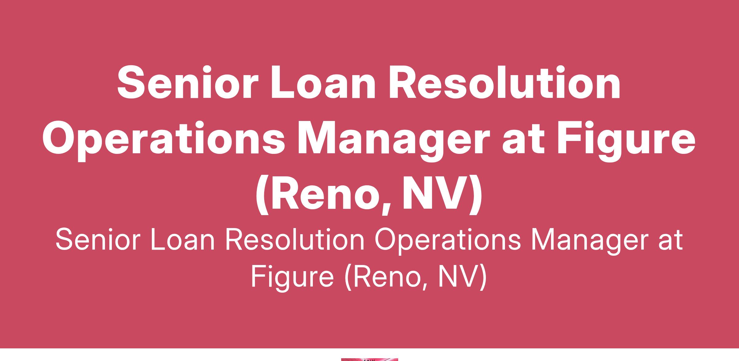 Senior Loan Resolution Operations Manager at Figure (Reno, NV)