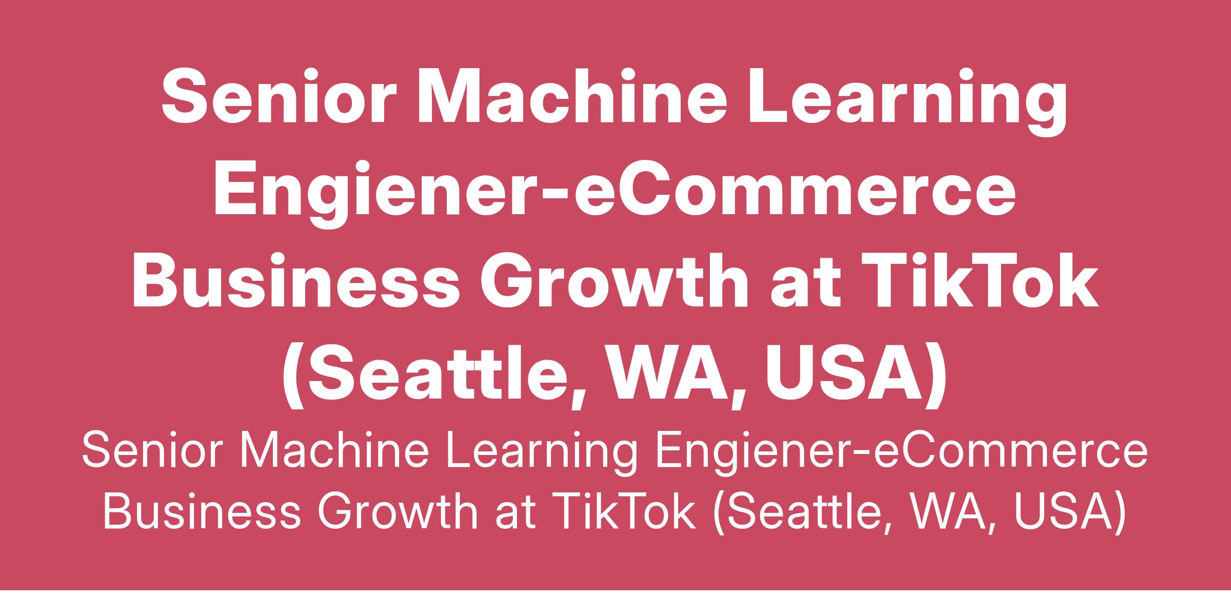 Senior Machine Learning Engiener-eCommerce Business Growth at TikTok (Seattle, WA, USA)