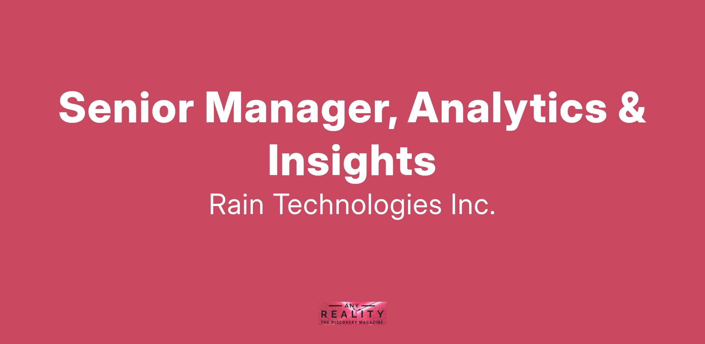 As Senior Manager, Analytics & Insights, you will be responsible for producing reporting, analytics, and insights to lead and support strategic initiatives and cross-functional teams. You will be a trusted expert who understands the data sources available and how they impact our products and business, and that is able to transform raw data into actionable insights. You will deliver analyses, insights, tools, and dashboards that help provide decision-making support, improve operational efficiency, and enable growth.