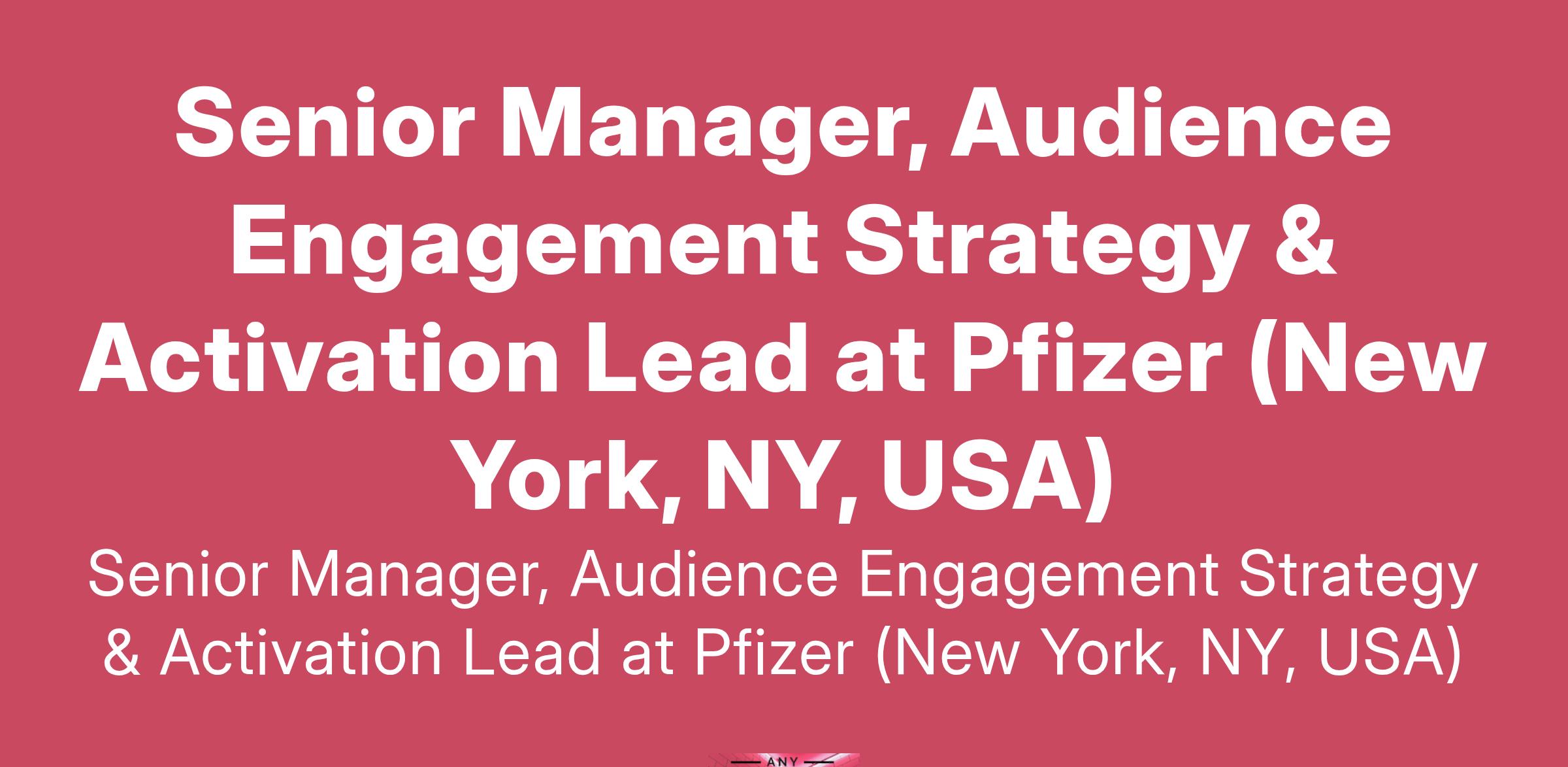 Senior Manager, Audience Engagement Strategy & Activation Lead at Pfizer (New York, NY, USA)