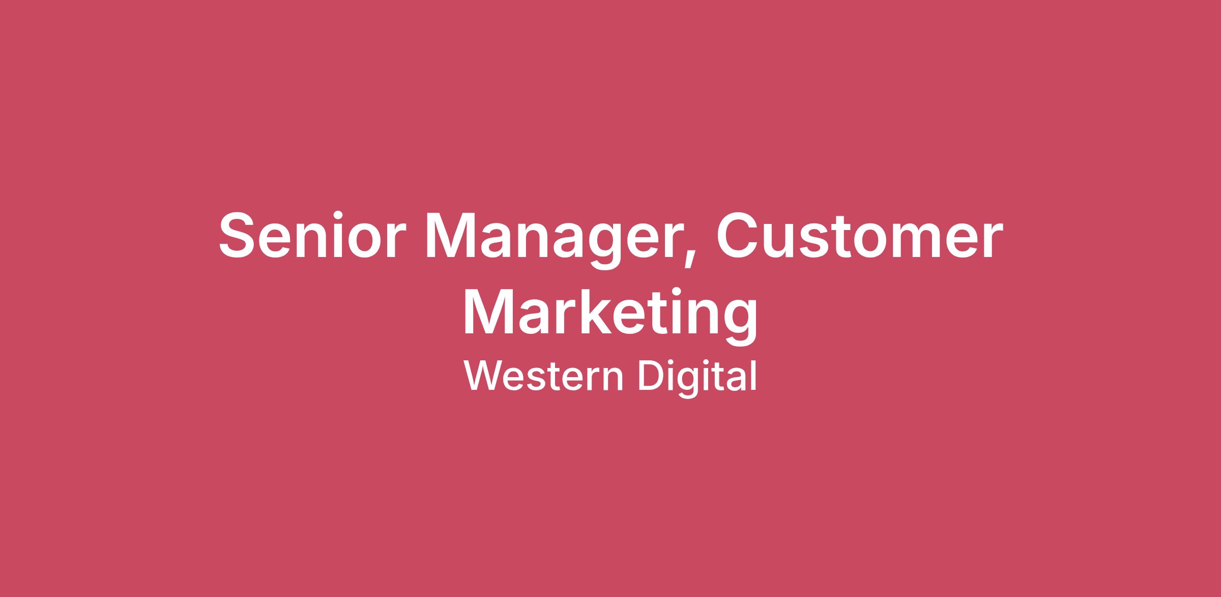 Company DescriptionAt WD, our vision is to power global innovation and push the boundaries of technology to make what you thought was once impossible, possible. At our core, WD is a company of problem solvers. People achieve extraordinary things given the right technology. For decades, we’ve been doing just that—our technology helped people put a man on the moon and capture the first-ever picture of a black hole. We offer an expansive portfolio of technologies, HDDs, and platforms for business, creative professionals, and consumers alike under our Western Digital®, WD®, and WD_BLACK™. We are a key partner to some of the largest and highest-growth organizations in the world. From enabling systems to make cities safer and more connected, to powering the data centers behind many of the world’s biggest companies and hyperscale cloud providers, to meeting the massive and ever-growing data storage needs of the AI era, WD is fueling a brighter, smarter future. Today’s exceptional challenges require your unique skills. Together, we can build the future of data storage.Job DescriptionAs part of the dynamic, results-oriented Corporate Marketing organization, the Senior Manager, Customer Marketing will play a strategic role within WD’s Brand Strategy & Experience team. The primary objective of this role is to build and scale a global customer advocacy and storytelling program that validates WD’s leadership as the storage foundation of the AI-driven data economy. WD’s durable storage systems form the indispensable infrastructure that makes AI possible, delivering certainty in capacity, performance, and efficiency at every scale. Customer stories are critical to bringing this leadership to life. This role will partner closely with enterprise customers to capture real-world outcomes and translate them into compelling marketing proof points that strengthen WD’s credibility across AI infrastructure and data innovation markets. The Senior Manager collaborates closely with AR/PR, Brand, Channel Marketing, Communications, Product Marketing, and Sales teams to identify strategic customer advocates and develop storytelling assets (e.g., case studies, testimonials, and executive narratives) that support marketing campaigns, sales enablement, and industry visibility.What You’ll Achieve A vibrant customer advocacy program that validates WD’s leadership as the storage foundation of the AI-driven data economy A strong pipeline of referenceable enterprise customers across AI infrastructure and data innovation markets Compelling customer stories that showcase real-world outcomes in capacity, performance, and efficiency Strong partnerships with Sales, Product Marketing, and Communications teams A scalable library of customer proof points supporting campaigns, executive storytelling, and global industry events Essential Duties & Responsibilites:Build and scale WD’s global enterprise customer advocacy and storytelling program Identify and develop strategic customer relationships that support long-term advocacy Lead development of case studies, video testimonials, and customer reference stories Capture customer success stories across marketing campaigns, industry events, and digital channels Support PR initiatives and thought leadership programs through credible customer proof points Partner with Brand Narrative and Product Marketing teams to ensure customer stories reinforce WD’s enterprise positioning Collaborate with communications and creative teams to translate customer innovation into engaging storytelling assets Manage relationships with external production partners and agencies supporting customer content creation Maintain a scalable library of customer reference stories and advocacy assets used across campaigns, sales enablement, and executive programs QualificationsRequired:Bachelor’s degree in Marketing, Communications, Business, or equivalent experience Deep experience in B2B enterprise technology marketing Direct experience building customer advocacy or customer storytelling programs within enterprise IT markets Proven track record developing case studies, testimonials, and customer reference programs Strong ability to build relationships with enterprise customers and internal stakeholders Experience working cross-functionally with Sales, Product Marketing, and Communications teams Strong storytelling and editorial judgment with the ability to translate complex technology into compelling narratives Experience managing agencies and external creative partners Organized, methodical, strong project manager Skillful verbal and written communicator Self-motivated, adaptable, and comfortable working in a fast-paced environment Preferred:Experience in AI infrastructure, cloud platforms, or enterprise data systems Familiarity with enterprise storage, hyperscale infrastructure, or data platform technologies Experience capturing customer stories at global industry events and executive programs Additional InformationWD is committed to providing equal opportunities to all applicants and employees and will not discriminate against any applicant or employee based on their race, color, ancestry, religion (including religious dress and grooming standards), sex (including pregnancy, childbirth or related medical conditions, breastfeeding or related medical conditions), gender (including a person’s gender identity, gender expression, and gender-related appearance and behavior, whether or not stereotypically associated with the person’s assigned sex at birth), age, national origin, sexual orientation, medical condition, marital status (including domestic partnership status), physical disability, mental disability, medical condition, genetic information, protected medical and family care leave, Civil Air Patrol status, military and veteran status, or other legally protected characteristics. We also prohibit harassment of any individual on any of the characteristics listed above. Our non-discri
