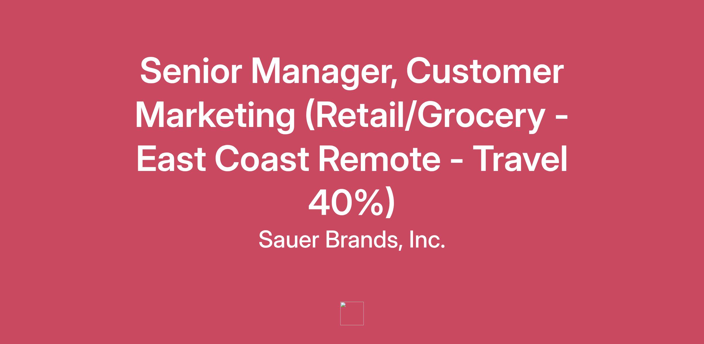 We are hiring Rockstars to join our Sauer Brands team! *Must be on the food manufacturer side selling into commercial retail center store grocery utilizing data insights and working between brand and sales teams. Unable to consider if you are working at a retailer, food service, K-12, non-commercial, c-stores, beverage, DSD. Overall Goal of Position: We are seeking a dynamic, creative and strategic Senior Manager of Customer Marketing to lead the development of customer activation strategies and shopper-driven category plans across our Retail and Away From Home (Food Service) customers. Job Summary: This role will lead the critical function of Customer Marketing for the Sauer Brand families (Duke's mayo, Mateo's salsa, Kernal Seasonings, The Spice Hunter) and serve as the primary voice of Sales on the Sauer Brands Management Team. This role will ensure Sauer Brands win at shelf and online through data-driven storytelling, compelling retail programs, and best-in-class execution. The Senior Manager will foster cross-functional collaboration and capability building across the Sales function. This position will report to the VP of Sales Strategy and will be in the Sales Strategy department. Key Duties and Responsibilities: Leadership & Team Development Lead and develop the Customer Marketing functional area Build capabilities in customer activation, shopper insights, category development and KPI development and reporting Foster collaboration with cross-functional teams including Sales, Brand Marketing, Revenue Management, and Supply Chain Customer Marketing Strategy & Execution Development of our brands Innovation pricing, assortment, promo recommendations; build and maintain innovation sales projection models (Size of Prize based on ACV and Velocity assumptions); direction on Mateo’s and Kernel areas Translate brand plans into insight-led customer-ready strategies and selling tools. Oversee creation of retailer-specific programming including in-store, digital, and omnichannel campaigns Guide trade investment, price pack architecture, and in-market execution Develop annual customer plans and joint business planning inputs Partner with brand marketing and the field sales team to optimize activation. Represent Sauer Brands brand strategy at customer meetings Sales & Insights Integration Align customer-facing plans with national brand and trade strategies, ensuring retail excellence Guide development of tools and scorecards that track the effectiveness of promotions, activations, and shelf performance Champion the voice of the shopper and retailer across the organization to ensure insights-driven decision-making Budget & Process Management Projection and management of Slotting and Shopper needs and management of budget Work closely with Revenue Management team to ensure pricing and promotional guardrails are set and executed in line with Sauer Brands’ financial objectives. What We Are Looking For: Personal Characteristics Entrepreneurial drive and the desire to “build a business” Outgoing, energetic, and results oriented personality Overall confidence in one’s abilities and comfortable communicating the facts Smart, creative and inquisitive Integrity-Does the right thing even when no one is looking Disciplined approach, and accountable for KPIs No excuses mindset and Dependable team player with positive attitude Personal values that mesh with SBI values Performance History Documented history of making improvements in assigned work area/responsibilities Stellar references based on contributions and performance Demonstrated proficiency in the following areas: Excellent strategic thinking, communication, and project management skills Prior experience influencing at senior levels across commercial functions Deep understanding of retail activation, syndicated data tools (IRI, Nielsen), shopper insights, and category development principles Education & Experience: Bachelor’s degree in Business, Marketing, or related field; MBA preferred 5-10+ years of progressive experience in CPG food manufacturing with strong exposure to customer marketing, category management. Must have experience in sales role with revenue growth. Must be on the food manufacturer side selling into commercial retail center store grocery utilizing data insights and working between brand and sales teams. Unable to consider if you are working at a retailer, food service, K-12, non-commercial, c-stores, beverage, DSD. Strong customer marketing experience, analytics, category management required and brand experience a plus. Proficient in Excel and PowerPoint; experience with trade planning, CRM, and data visualization tools (e.g., Power BI) is a plus Other: Location: East Coast Remote Travel 40%, Richmond HQ and Customer sites What Is In It For You? Our company acknowledges talented people are attracted to companies that provide competitive pay, comprehensive benefits packages and outstanding advancement opportunities. For this reason, we offer a Comprehensive Benefits Plan that includes the following: 401K Medical/Dental/Vision Coverage Vacation, Sick Days and Holidays Flexible Spending Accounts Tuition Reimbursement Employee and Dependent Life Insurance Voluntary Disability Insurance Other Voluntary Insurance Options Sauer Brands, Inc. is an equal opportunity employer. All qualified applicants will receive consideration for employment without regard to race, color, religion, age, sex, national origin, disability status, genetics, protected veteran status, sexual orientation, gender identity or expression, or any other characteristic protected by federal, state or local laws.