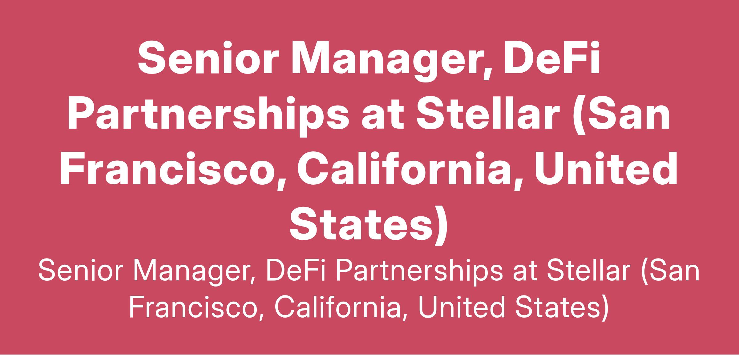 Senior Manager, DeFi Partnerships at Stellar (San Francisco, California, United States)