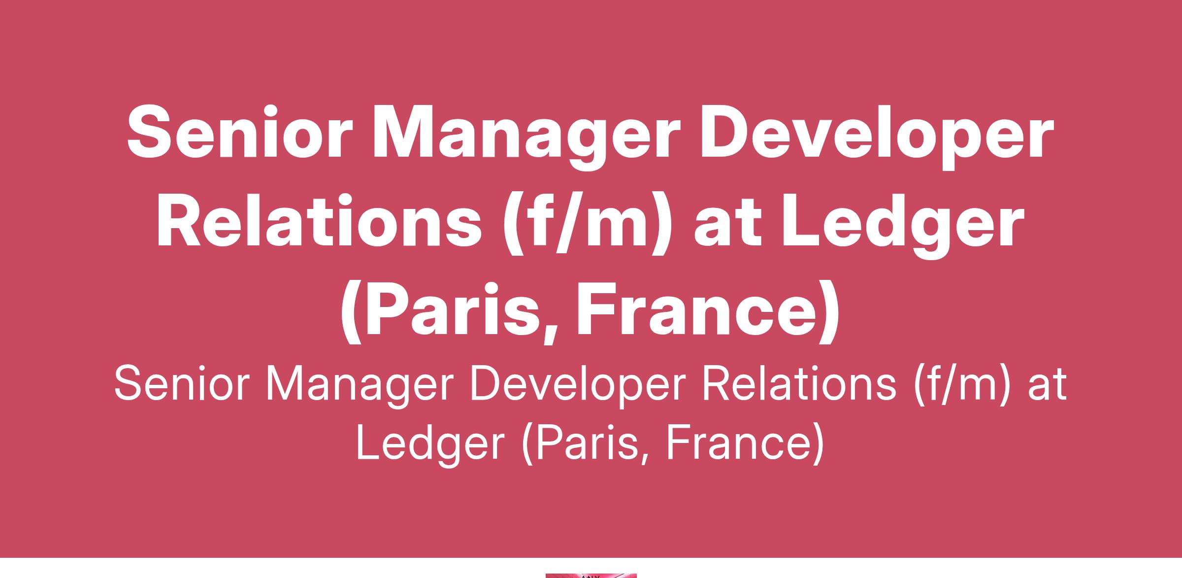Senior Manager Developer Relations (f/m) at Ledger (Paris, France)