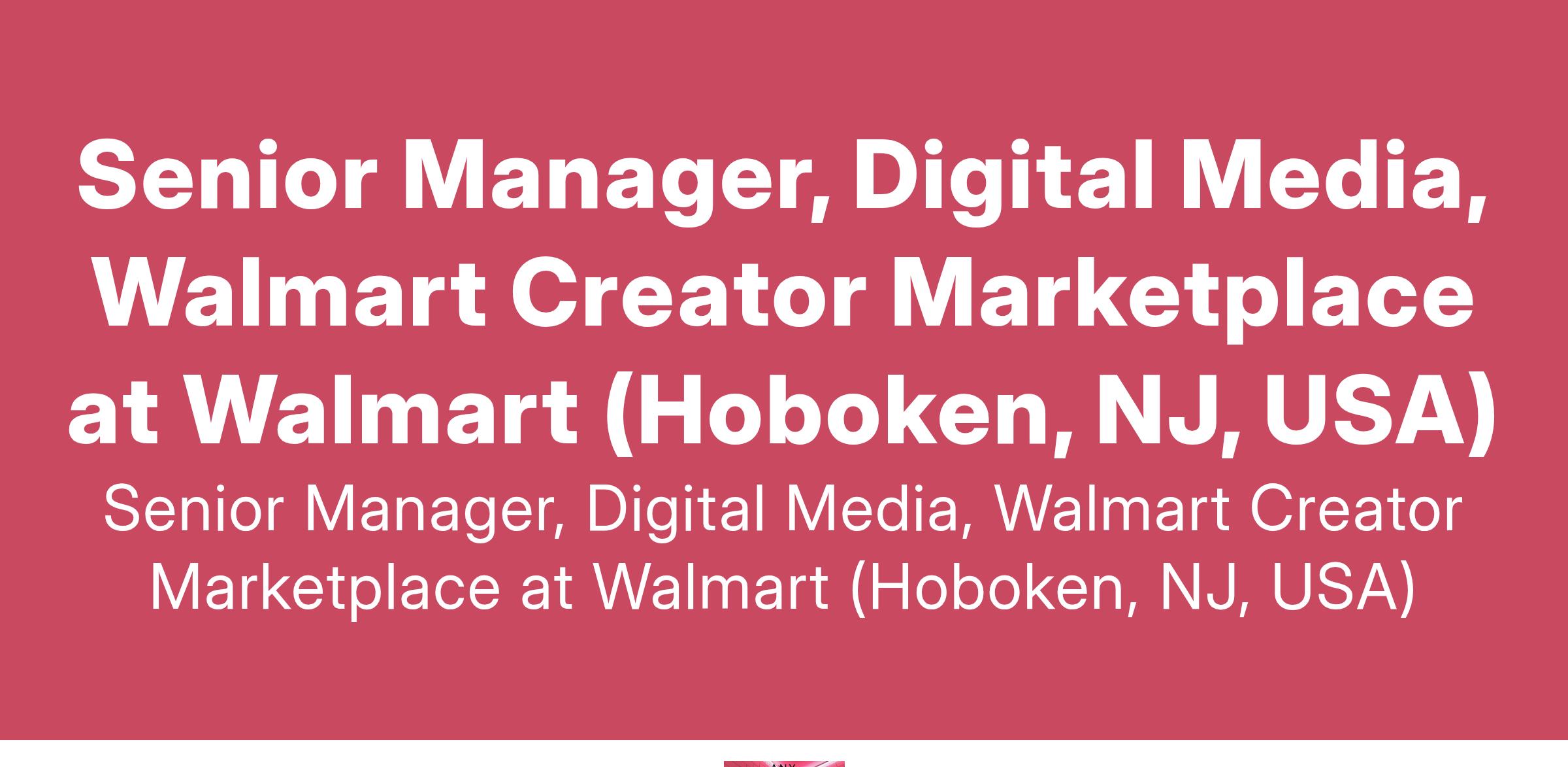 Senior Manager, Digital Media, Walmart Creator Marketplace at Walmart (Hoboken, NJ, USA)