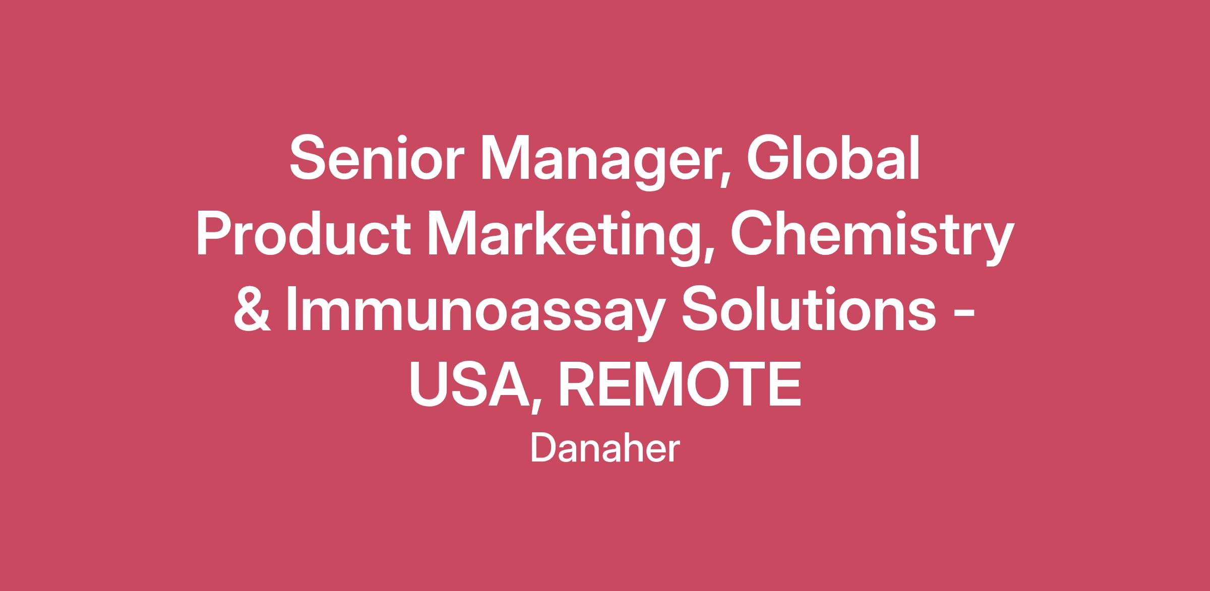 Senior Manager, Global Product Marketing, Chemistry & Immunoassay Solutions - USA, REMOTE