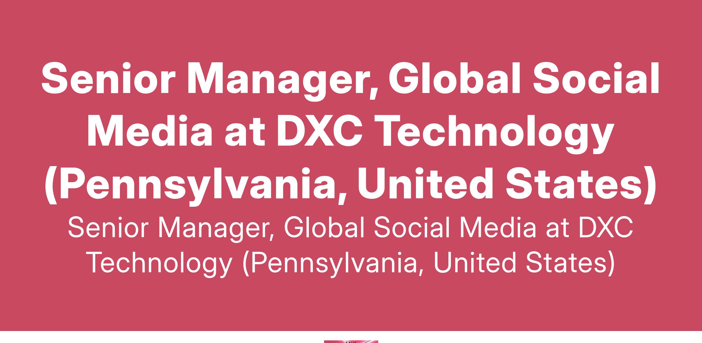 Senior Manager, Global Social Media at DXC Technology (Pennsylvania, United States)