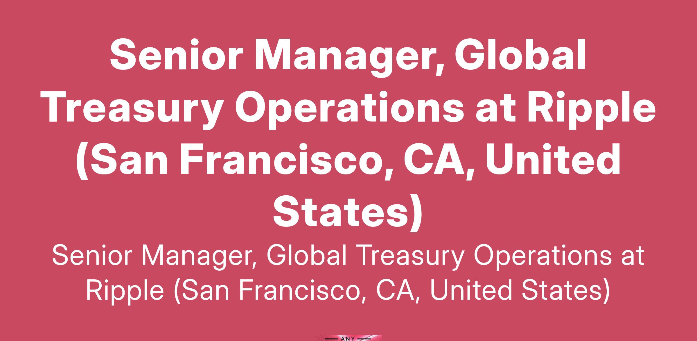 Senior Manager, Global Treasury Operations at Ripple (San Francisco, CA, United States)