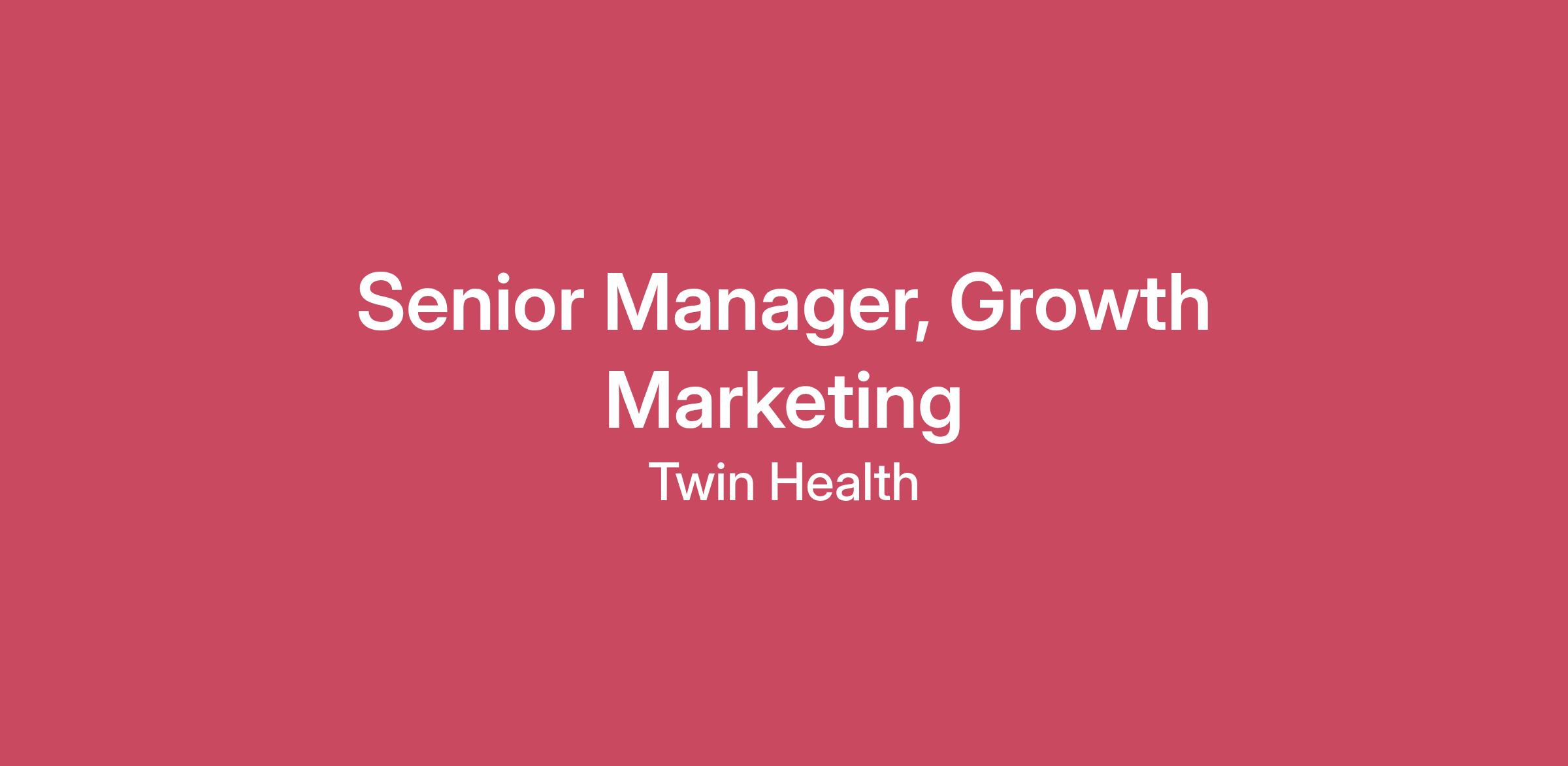 Twin Health At Twin Health, we empower people to improve and prevent chronic metabolic diseases, like type 2 diabetes and obesity, with a new standard of care. Twin Health is the only company applying AI Digital Twin technology exclusively toward metabolic health. We start by building a dynamic model of each person’s metabolism — drawing on thousands of data points from CGMs, smartwatches, and meal logs — that maps their personal path to better health. Guided by a dedicated clinical care team, our members have lowered their A1C below the diabetes range, achieved lasting weight loss, and reduced or even eliminated medications, all while living healthier, happier lives. Working here Our team at Twin Health is passionate, talented, and united by a shared purpose: to improve the metabolic health and happiness of our members. We believe in empowering every Twin to make a meaningful impact for our members, our clients, and each other, while enjoying a supportive, collaborative work environment. Twin has been recognized not only for our innovation but also for our culture, including: Innovator of the Year by the Employer Health Innovation Roundtable (EHIR), selected to CB Insights’ Digital Health 150, and named one of Newsweek’s Top Most Loved Workplace® . With more than $100 million raised in recent funding, including a $53 million Series E round in 2025 led by Maj Invest, and a $50 million investment in 2023 led by Temasek, Twin is scaling rapidly across the U.S. and globally. Backed by leading venture firms like ICONIQ Growth, Sequoia, Sofina, Temasek, and Peak XV, we are building the most impactful digital health company in the world. Join us as we reinvent the standard of care in metabolic health.Opportunity We are seeking a Senior Manager, Growth Marketing to own and scale Twin’s outbound growth engine. This role exists to dramatically increase seller productivity, improve account-level conversion, and reduce friction across the sales motion. This is not a traditional demand gen role. You will design the systems, messaging, and automation that help each seller generate more qualified conversations with less effort, using precise targeting, strong narratives, and data- and AI-enabled workflows. You will partner deeply with Sales, Revenue Operations, Product Marketing, Field Marketing, Content, Design, Brand, and Client Growth to ensure outbound marketing is coordinated, signal-driven, operationally sound, and measurable. Responsibilities Outbound Growth & Sales Productivity Own the strategy and execution of Twin’s outbound growth engine across email, LinkedIn, website, and digital touch points Design and maintain sales-ready outbound sequences, messaging, and talk tracks by persona, industry, and deal stage Enable social selling by equipping sellers with content, scripts, and activation guidance that gets used Build trigger-based outbound plays tied to account behavior, engagement, lifecycle stage, and intent signals Partner with Sales and RevOps to reduce seller effort while increasing meeting rates and pipeline quality Account-Based Growth Strategy Shift growth execution from lead-based to account- and buyer-centric Translate GTM priorities into coordinated outbound motions by segment (employers, health plans, brokers) Ensure messaging is tailored to buyer role, industry context, and stage of consideration Align outbound marketing tightly with sales motions and field activity Campaign & System Orchestration Own HubSpot as an execution layer, not just a campaign tool Design end-to-end workflows across marketing, sales, and digital channels Ensure clean handoffs between marketing and sales with clear ownership and timing Manage the commercial marketing calendar with a focus on pipeline impact, not volume AI, Automation & New Growth Flows Partner with MarTech and RevOps to deploy AI-assisted workflows that scale personalization in outbound Leverage AI to accelerate creation of outbound copy, sales sequences, and social messaging Design automated follow-up, routing, and scheduling flows that increase speed to conversation Pilot and scale new experiences such as AI chat, qualification, and meeting booking where they directly support outbound performance Narrative & Enablement Partner with Product Marketing, Content, and Brand to ensure outbound messaging clearly articulates Twin’s value by audience Own the translation of positioning into seller-ready language and assets Ensure consistency across email, social, web, and sales touchpoints Measurement & Optimization Define and track outbound productivity metrics including: Meetings per seller Reply and meeting rates by sequence Time to first touch for high-intent accounts Pipeline generated per rep Analyze performance and continuously optimize plays, messaging, and workflows Provide clear visibility into what is working and why Other duties as assigned What Success Looks Like (First 12 Months) Sellers generate materially more qualified meetings without increasing outbound volume Outbound programs are account-based, personalized, and system-driven Sales and marketing operate from shared plays, messaging, and workflows Clear attribution exists from outbound motion to pipeline and revenue AI and automation measurably reduce manual effort and increase speed to conversion Outbound strategy becomes a repeatable, scalable engine rather than ad hoc seller effort Qualifications 6-8+ years of experience in growth marketing, demand generation, or revenue-aligned marketing roles, with a strong focus on outbound or account-based growth Proven ability to increase seller productivity and pipeline quality through marketing-led outbound programs Hands-on experience building and operating HubSpot-driven outbound systems, including segmentation, workflows, and lifecycle automation Strong understanding of sales motions and seller workflows, with a track record of effective partnership with Sales and Revenue Operations Experience designing account- 