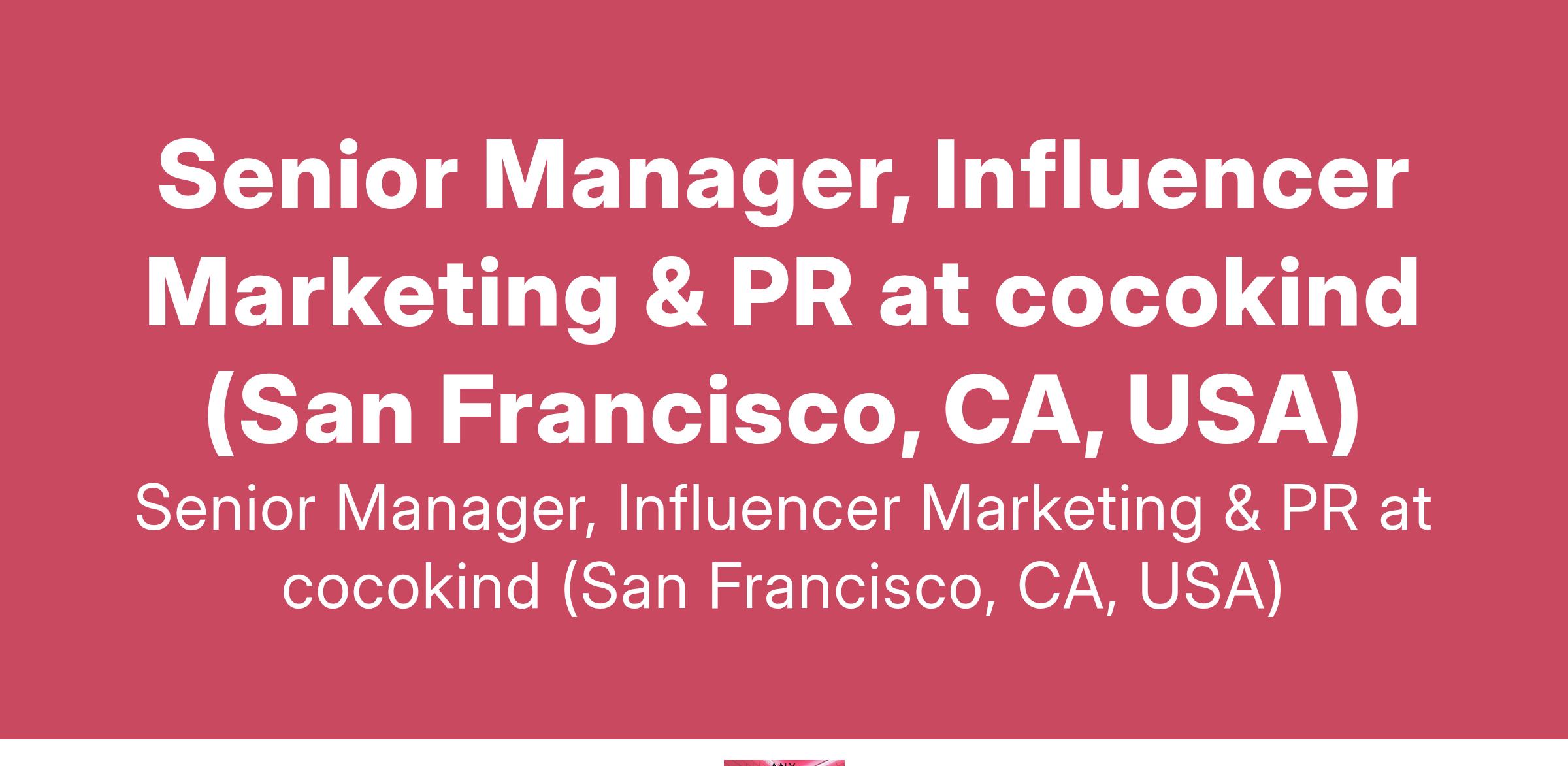 Senior Manager, Influencer Marketing & PR at cocokind (San Francisco, CA, USA)