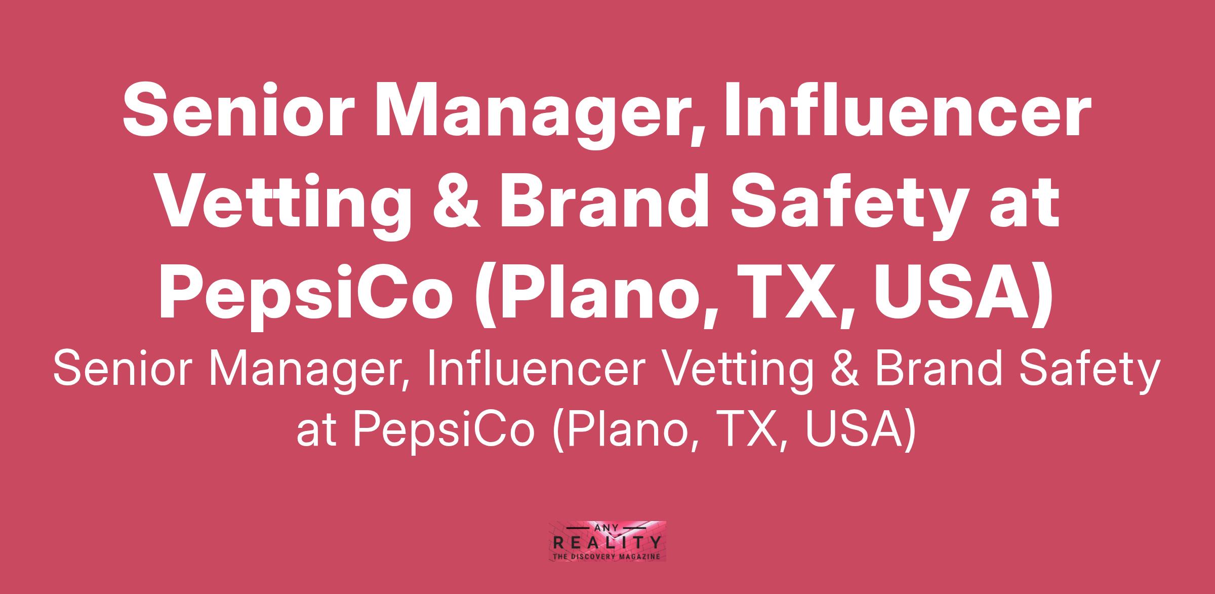 Senior Manager, Influencer Vetting & Brand Safety at PepsiCo (Plano, TX, USA)