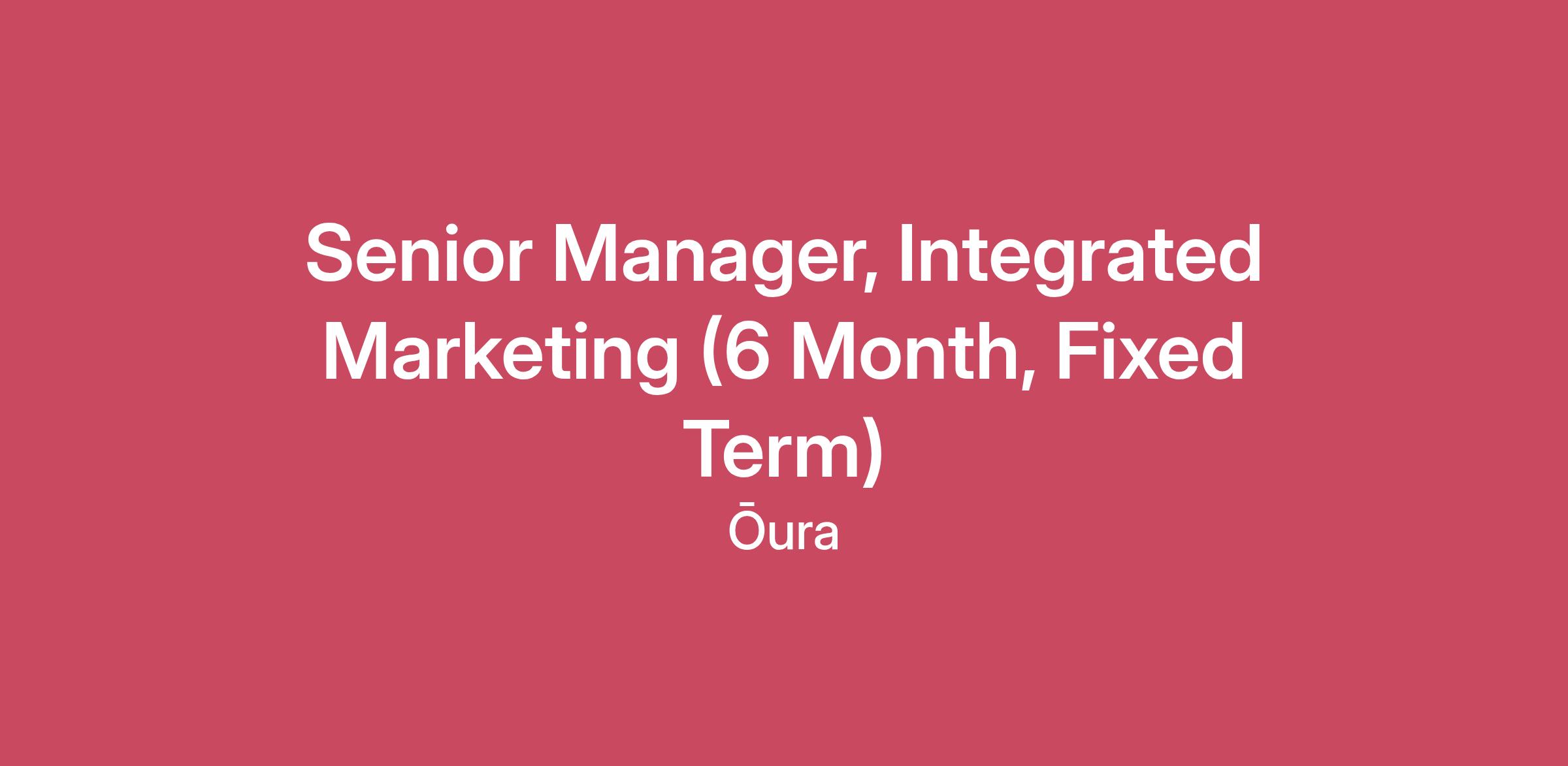 Our mission at Oura is to empower every person to own their inner potential. Our award-winning products help our global community gain a deeper knowledge of their readiness, activity, and sleep quality by using their Oura Ring and its connected app. We've helped millions of people understand and improve their health by providing daily insights and practical steps to inspire healthy lifestyles. Empowering the world starts with living our values and empowering our team. As a quickly growing company focused on helping people live healthier and happier lives, we ensure that our team members have what they need to do their best work — both in and out of the office. ŌURA is seeking a seasoned Manager, Integrated Marketing (6 Month-Fixed Term) to lead the planning and execution of key integrated marketing campaigns across product, brand, and commercial moments. This role blends strategic thinking with operational excellence, serving as the connective tissue between teams to ensure cohesive, high-performing campaigns. At this level, this role requires independent leadership — driving clarity, alignment, and accountability across complex workstreams. You’ll partner closely with cross-functional teams and agency collaborators to deliver world-class 360° campaigns that build awareness, drive engagement, and strengthen brand equity. What you will do: Strategic Campaign Leadership Translate brand and product strategies into actionable, integrated campaign plans. Drive end-to-end strategy across owned, earned, and paid channels, ensuring campaigns meet both brand and business goals. Identify opportunities to elevate storytelling, creative excellence, and audience resonance across key initiatives. Cross-Functional Influence Partner with Product Marketing, Brand, Comms, Growth, and Creative to align campaign strategy, messaging, and execution. Serve as the day-to-day lead for campaign workstreams, ensuring clarity of roles, responsibilities, and deliverables. Build trust and collaboration with internal stakeholders and external agency partners to maintain seamless integration. Communicate effectively with senior partners to surface insights, risks, and recommendations with confidence and clarity. Campaign Planning & Execution Manage the day-to-day execution of integrated campaigns across brand, product, retail, and cultural moments. Develop and maintain campaign timelines, ensuring deliverables meet deadlines and align with strategic goals. Coordinate input and feedback across internal stakeholders to ensure cohesive storytelling and seamless execution. Work hand-in-hand with Creative, Production, and Channel leads to ensure messaging and assets align across touchpoints. Serve as a cross-functional connector between internal teams (Product Marketing, Comms, Growth, Lifecycle, Creative, Production) and agency partners. Partner with the Head of Integrated Marketing to translate strategy into actionable plans that deliver measurable results. Measurement & Optimization Partner with Analytics and Channel teams to evaluate campaign performance and share insights post-launch. Document learnings and identify opportunities to refine processes for future campaigns. We would love to consider you for this role if you have: 9+ years of experience in integrated marketing, brand marketing, or campaign management (agency or in-house). Demonstrated ability to lead 360° campaigns from strategy to execution, with measurable brand or business impact. Strong understanding of integrated marketing planning across digital, social, content, lifecycle, partnerships, and retail. Exceptional communication and organizational skills; able to manage multiple complex workstreams independently. Experience working with creative and media agencies to deliver high-quality campaigns. Adept at managing ambiguity, balancing priorities, and navigating cross-functional alignment in a fast-paced environment. Highly organized, detail-oriented, and comfortable managing multiple workstreams simultaneously. Passion for wellness, technology, and purpose-driven brands preferred. Must be based in the U.S.; Eastern Time Zone preferred for team alignment. At Oura, we care about you and your well-being. Everyone here at Oura has a ring of their own and we are continually looking to improve employee health. What we offer: Competitive salary Health, dental, vision insurance, and mental health resources An Oura Ring of your own plus employee discounts for friends & family 20 days of paid time off plus 13 paid holidays plus 8 days of flexible wellness time off *prorated Paid sick leave Oura takes a market-based approach to pay, which may vary depending on your location. US locations are categorized into tiers based on a cost of labor index for that geographic area. While most offers will be closer to the starting range, successful candidates' pay will be determined based on job-related skills, experience, qualifications, work location, internal peer equity, and market conditions. These ranges may be modified in the future. Region 1 $149,000-$186,000 Region 2 $138,000-$172,000 Region 3 $128,000-$160,000 A recruiter can determine your zones/tiers based on your US location. We are not considering candidates residing in the following states: Alaska (AK), Delaware (DE), Iowa (IA), Mississippi (MS), Missouri (MO), Nebraska (NE), South Dakota (SD), Vermont (VT), West Virginia (WV), and Wisconsin (WI) As the holiday season approaches, we want to inform you that response times and the holiday process may be slightly extended due to business team schedules. We truly appreciate your patience and understanding during this period and remain committed on keeping you informed as we review applications. Thank you for considering a role at OURA - we look forward to learning more about you! Oura is proud to be an equal opportunity workplace. We celebrate diversity and are committed to creating an inclusive environment for all employees. Individuals seeking employment