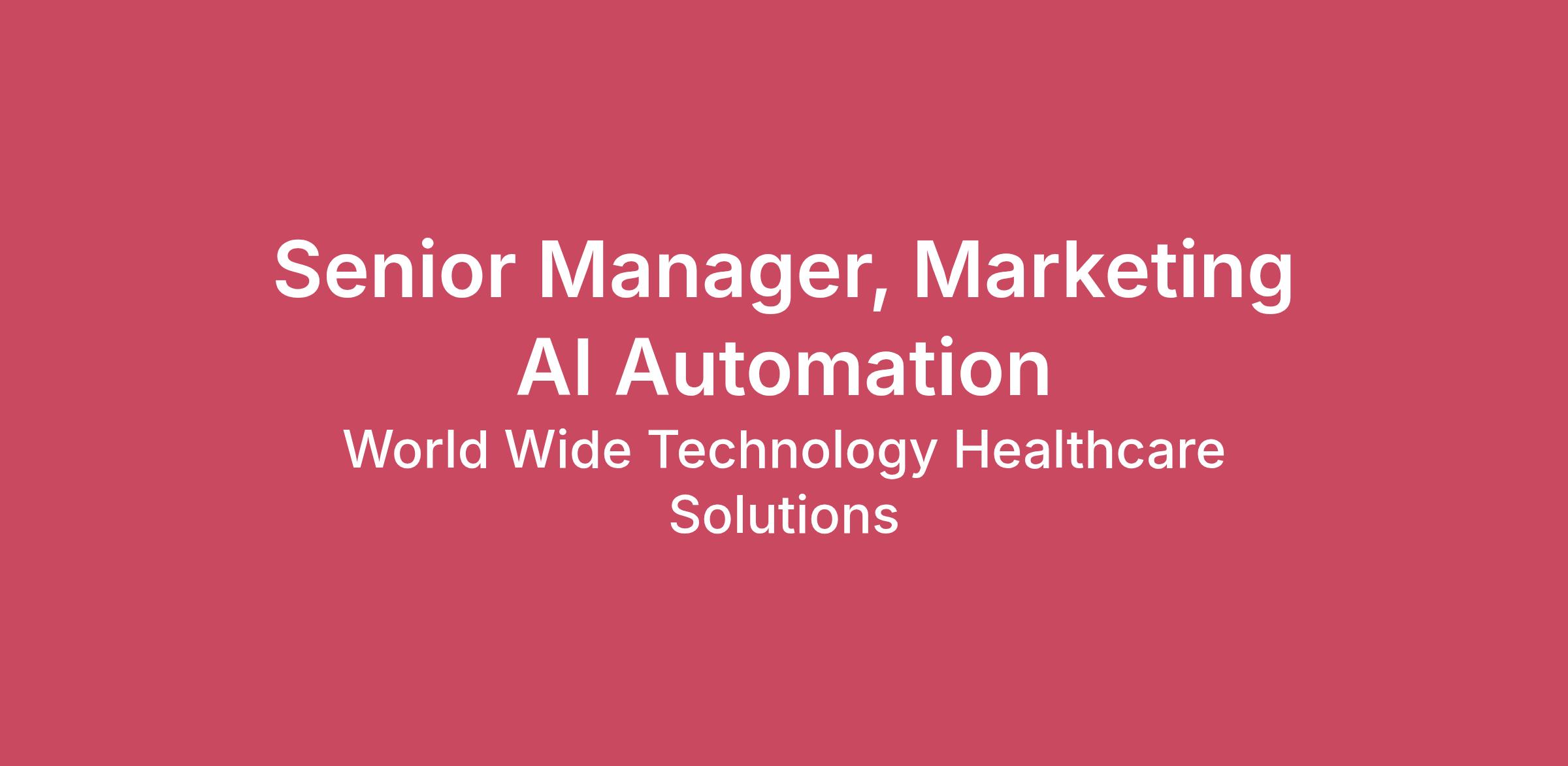 Required Qualifications Strong background in software engineering and system architecture, with experience leading complex, distributed platforms. Demonstrated experience building AI native applications, including LLM integration, automation workflows, or intelligent agents. Experience leading or scaling small engineering teams, including hiring, onboarding, and technical mentorship. Proficiency with modern web and backend technologies (e.g., JavaScript/TypeScript, Node.js, APIs, event-driven systems, cloud platforms). Experience designing and operating automation platforms or workflow-driven systems at scale. Strong understanding of data flows, integrations, and platform interoperability. Ability to think in terms of products and platforms, not just projects. Comfort operating in ambiguity and driving technical clarity where requirements are evolving. Excellent communication skills with the ability to explain complex technical concepts to non‑technical audiences. Solid understanding of Agile and iterative delivery models. Deep alignment with and commitment to the WWT Core Values. Bachelor’s degree in Computer Science, Engineering, or a related field preferred; equivalent experience will be considered. Certain states and localities require employers to post a reasonable estimate of the salary range. A reasonable estimate of the current base pay range for this position is $140,400 to $175,000 annually. Actual salary will be based on a variety of factors, including shift, location, experience, skill set, performance, licensure and certification, and business needs. The range for this position in other geographic locations may differ. Certain positions may also be eligible for variable incentive compensation, such as bonuses or commissions, that are not included in the base pay. The well-being of WWT employees is essential. So, when it comes to our benefits package, WWT has one of the best. We offer the following benefits to all full-time employees: Health and Wellbeing: Health, Dental, and Vision Care, Onsite Health Centers, Employee Assistance Program, Wellness program Financial Benefits: Competitive pay, Profit Sharing, 401k Plan with Company Matching, Life and Disability Insurance, Tuition Reimbursement Paid Time Off: PTO and Sick Leave (starting at 20 days per year) & Holidays (10 per year), Parental Leave, Military Leave, Bereavement Additional Perks: Nursing Mothers Benefits, Voluntary Legal, Pet Insurance, Employee Discount Program We strive to create an environment where all employees are empowered to succeed based on their skills, performance, and dedication. Our goal is to cultivate a culture of belonging that encourages innovation, collaboration, and respect for all team members, ensuring that WWT remains a great place to work for All! If you have any questions or concerns about this posting, please email taposting@wwt.com. #LI-MP1 QualificationsWhy WWT? At World Wide Technology, we work together to make a new world happen. Our important work benefits our clients and partners as much as it does our people and communities across the globe. WWT is dedicated to achieving its mission of creating a profitable growth company that is also a Great Place to Work for All. We achieve this through our world-class culture, generous benefits, and by delivering cutting-edge technology solutions for our clients. Founded in 1990, WWT is a global technology solutions provider leading the AI and Digital Revolution. WWT combines the power of strategy, execution, and partnership to accelerate digital transformational outcomes for organizations around the globe. Through its Advanced Technology Center, a collaborative ecosystem of the world's most advanced hardware and software solutions, WWT helps clients and partners conceptualize, test, and validate innovative technology solutions for the best business outcomes and then deploys them at scale through its global warehousing, distribution, and integration capabilities. With over 12,000 employees across WWT and Softchoice and more than 60 locations around the world, WWT's culture, built on a set of core values and established leadership philosophies, has been recognized 14 years in a row by Fortune and Great Place to Work® for its unique blend of determination, innovation, and creating a great place to work for all. What is the Internal WWT IT Team, and why join? The Internal WWT IT team is the backbone of our company’s technological infrastructure, ensuring seamless operations and continuous innovation. Our team is dedicated to managing and supporting the company’s technology infrastructure, ensuring the smooth operation of hardware, software, networks, and data systems, while providing top-notch technical support to employees. By joining the Internal WWT IT team, you will play a crucial role in maintaining the efficiency and security of our IT environment, enabling the company to achieve its strategic goals. The Internal IT team offers the opportunity to work in a dynamic and collaborative environment, where your contributions will have a direct impact on the company's success. If you are passionate about technology and eager to take on new challenges, we encourage you to apply and join our team. What will you be doing? As a Senior Manager – Marketing Automation & AI Engineering, you will own the technical strategy and execution of WWT’s marketing automation and AI capabilities. This role is responsible for designing and building the platforms that power internet and email campaign automation, AI driven‑ content systems, and the next generation of marketing technology at WWT. You will operate as a hands-on technical leader setting architecture, making build vs. buy decisions, and staffing a small team of engineers to deliver scalable, AI native solutions. While you will partner closely with Marketing and Digital stakeholders, this role is firmly rooted in engineering excellence, platform thinking, and modern AI‑ driven‑ system desi