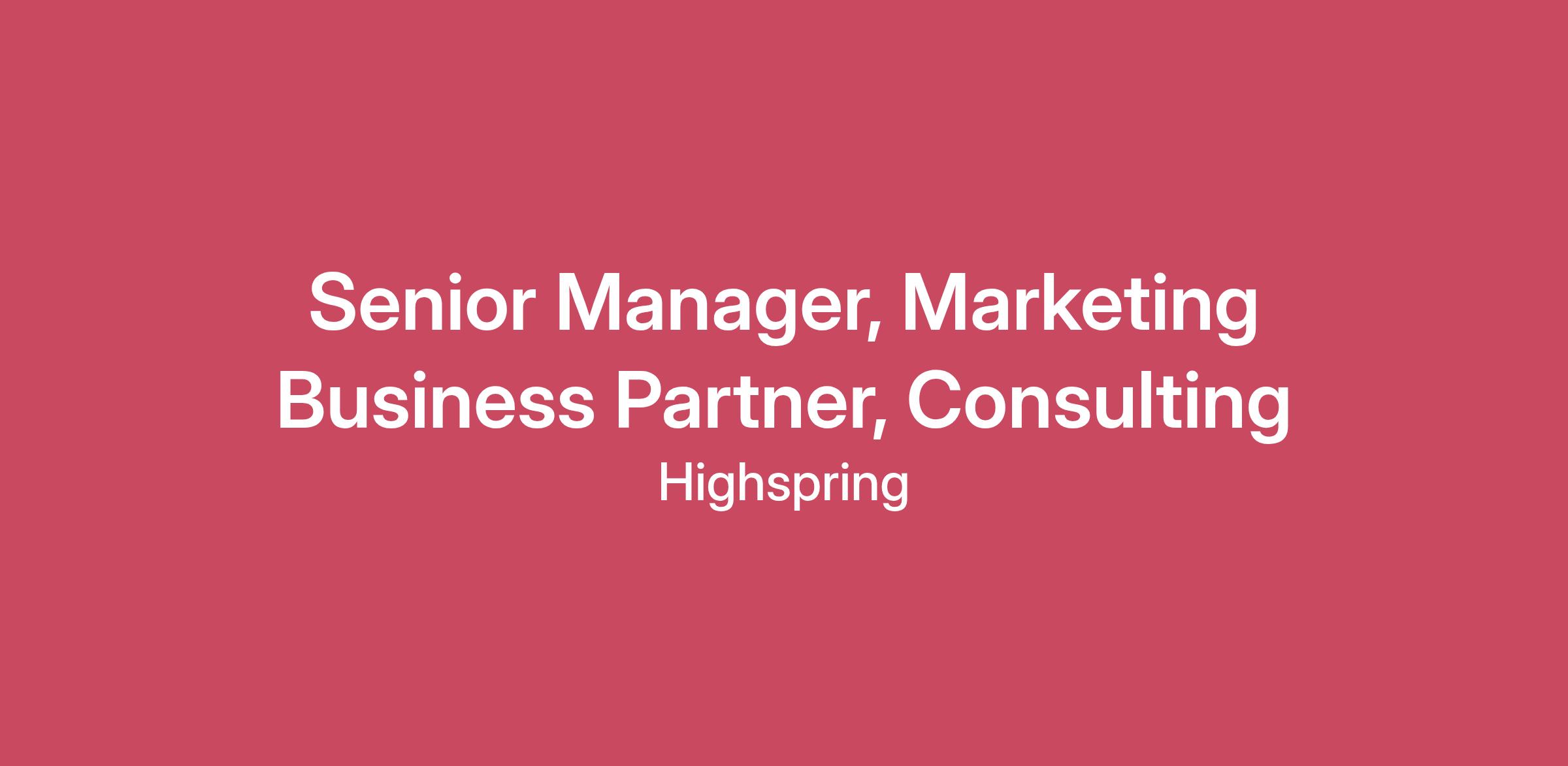 Senior Manager, Marketing Business Partner, Consulting