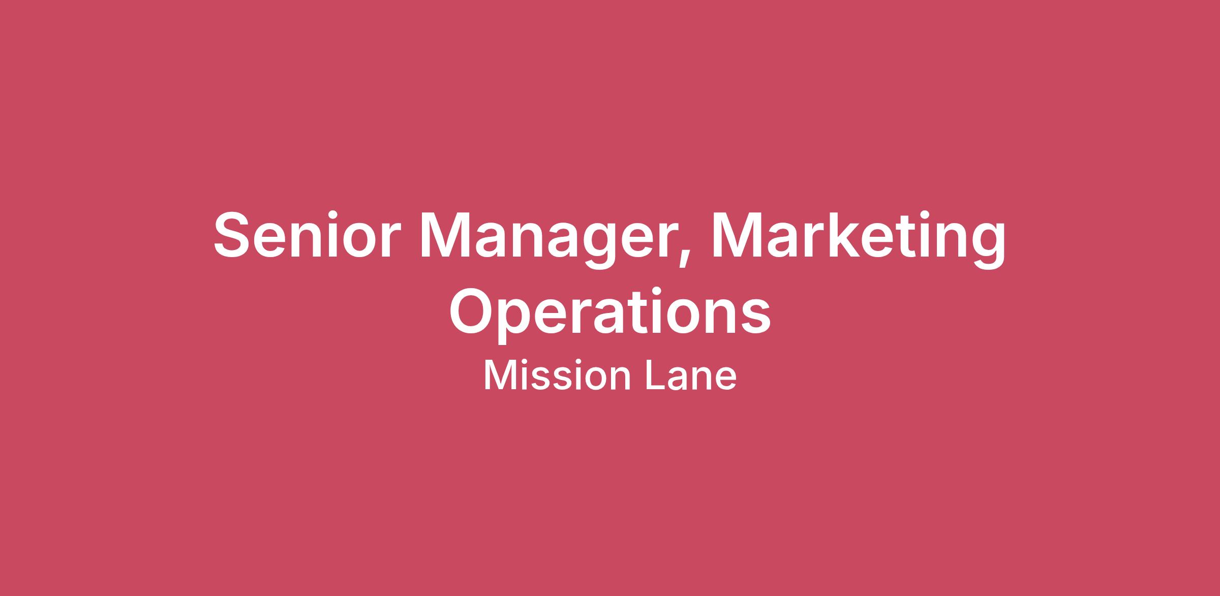 Mission Lane is combining the power of data, technology, and exceptional service to pave a clear way forward for millions of people on the path to financial success. By attracting top talent and leveraging cutting-edge technology, we’re enabling people to unlock real financial progress. Sound like a mission you can get behind?We’re looking for a leader with an uncompromising eye for detail, a deep background in complex direct mail cycles, and the technical fluency to build scalable marketing operations programs to join our team as the Senior Manager, Marketing Operations. The Impact You’ll Make You’ll drive forward our mission of empowering people to unlock financial progress by bridging the critical gap between creative strategy and technical execution for our direct mail marketing channel. At its core, our mission depends on our ability to deliver the best fit credit offers to individuals who can benefit from them the most; your work ensures that these opportunities are delivered with absolute precision. Your primary objective is to evolve our Direct Mail engine into a flawless, scalable system that supports this essential connection. As Senior Manager, Marketing Operations, you will: Serve as the final quality gatekeeper for all marketing campaigns, ensuring every offer, term, and disclosure is perfectly mapped in our highly regulated financial environment. Own and execute the Direct Mail technology roadmap, partnering with Engineering and Data teams to design scalable workflows. Identify opportunities to automate data processing and campaign building, reducing manual steps and accelerating our time-to-launch. Lead the production lifecycle, managing print vendor relationships, postal logistics (USPS), and inventory to optimize pricing. Directly manage and develop the marketing operations team, fostering a culture of uncompromising attention to detail and continuous growth. Improve and maintain robust documentation and processes for responding to audits with transparency and integrity. Minimum Qualifications: 7+ years in Marketing Operations or Program Management, with specific experience managing complex, recurring direct mail cycles. Proven experience in a regulated industry where precision and compliance are essential. Technical proficiency in managing roadmaps and understanding complex data logic, such as segmentation and offer mapping. Experience managing direct reports and successfully influencing cross-functional technical teams like Data and Engineering. Hands-on experience managing print vendors, mail shops, and postal logistics. Ability to travel as needed. Preferred Qualifications: Direct marketing experience within the credit card or financial services industry. Experience moving a team from manual workflows to automated systems. Compensation: Annual full-time starting base salary range: $134,000 - $158,000 This role is eligible for additional compensation in the forms of participation in our annual incentive and equity programs. Pay is based on factors such as work experience, education, certification(s), training, skills, and competencies related to the role. Mission Lane also offers a comprehensive benefits plan, which includes paid time off, 401(k) match, a monthly wellness stipend, health/ dental/ vision insurance options, disability coverage, paid parental leave, flexible spending account (for childcare and healthcare), life insurance, and a remote-friendly work environment. About Mission Lane: Founded in December 2018, Mission Lane is a purpose-driven fintech company based in the U.S., with headquarters in Richmond, Virginia. It all started with a realization: nearly fifty percent of the adult population in the U.S. doesn’t have access to a clear line of credit. Most traditional credit card companies either overlook or overcharge this group because they have less-than-perfect credit scores or no scores at all. We decided this just wouldn’t do. In partnership with our sponsor banks, we offer credit cards under the Mission Lane brand name, with better, clearer terms, and a more refined customer experience than the alternatives available to people working hard to improve their credit. To date, over four million consumers have chosen Mission Lane, earning high customer ratings on Credit Karma for its market segment and industry leading Net Promoter scores. Mission Lane has cumulatively raised over $600 million of equity from leading investors, including Invus Opportunities, QED Investors, LL Funds, funds affiliated with Oaktree Capital Management, and other leading investors. Our commitment to a workplace built on respect and dignity is guided by our core value of Unity. We believe that everyone plays a vital role in our shared purpose, and we actively cultivate an environment where all individuals have the opportunity to do their best work. By fostering a culture of empathy and collaboration, we create a strong sense of belonging and support for every team member. Mission Lane is an equal opportunity employer. We do not discriminate on the basis of race, color, religion, sex (including pregnancy, sexual orientation, or gender identity), national origin, age, disability, genetic information, or any other protected status. Mission Lane provides reasonable accommodations to applicants who need them for medical or religious reasons, as required by law. Applicants can initiate an accommodation request by contacting peopleexperience@missionlane.com. Mission Lane is not sponsoring new applicant employment authorization and please, no third-party recruiters. Application Integrity: Our cardholders trust us with their financial well-being, and this trust starts with the integrity of the people on our team. We're looking for team members who share our dedication to transparency and truth. Please verify that the information in your application is accurate and complete. Providing any information to Mission Lane that is not completely truthful at any point during the appl