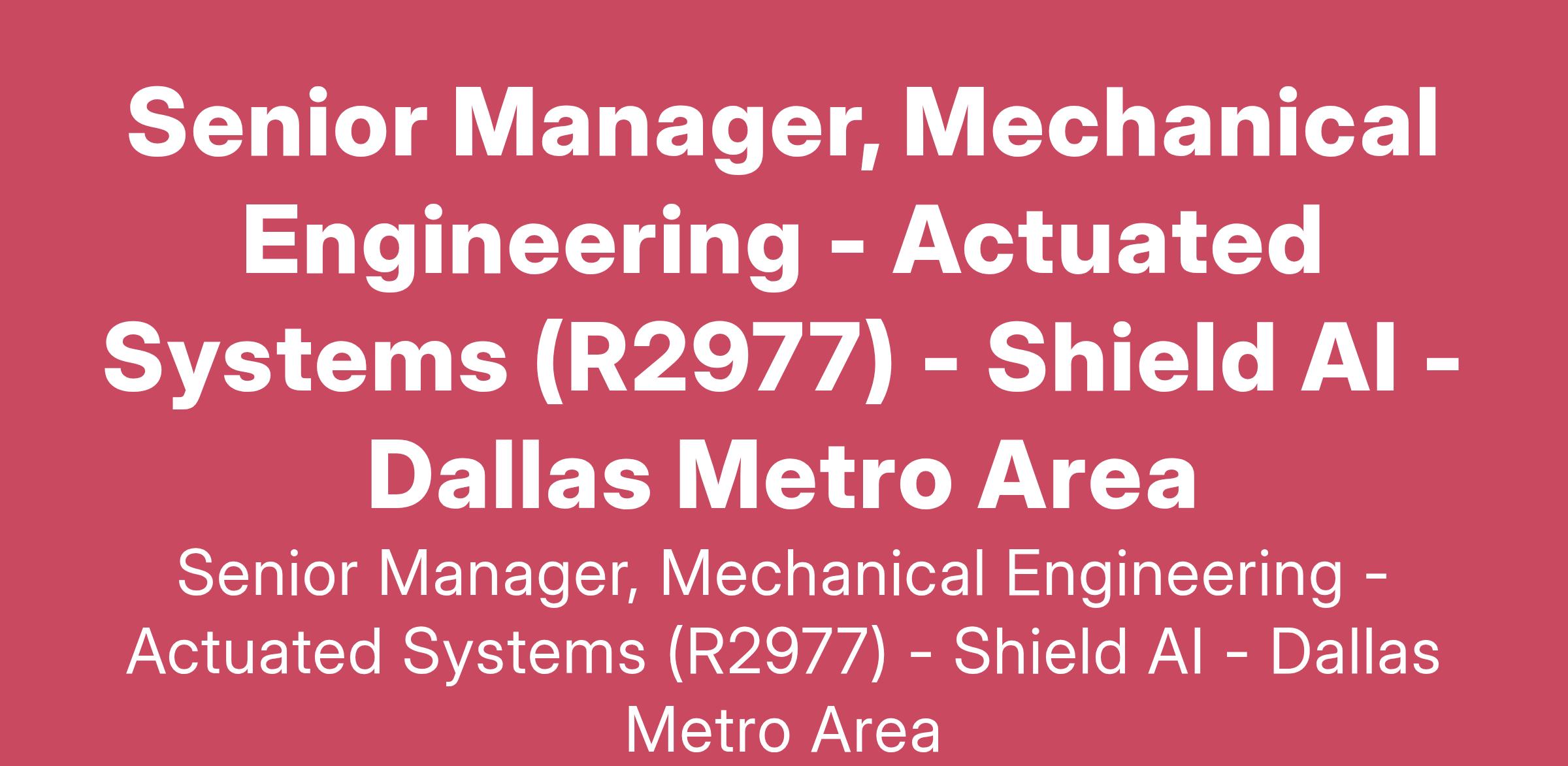 We are seeking a highly skilled Senior Manager of Mechanical Engineering to lead our Actuated Systems Team in the development of critical actuated systems for next-generation autonomous aircraft. In this role, you will oversee the design, prototyping, testing, and integration of complex mechanical systems responsible for aircraft functionality and mission success. These systems include flight control surfaces, retractable landing gear systems, folding wing mechanisms, payload deployment mechanisms, and miscellaneous moving systems