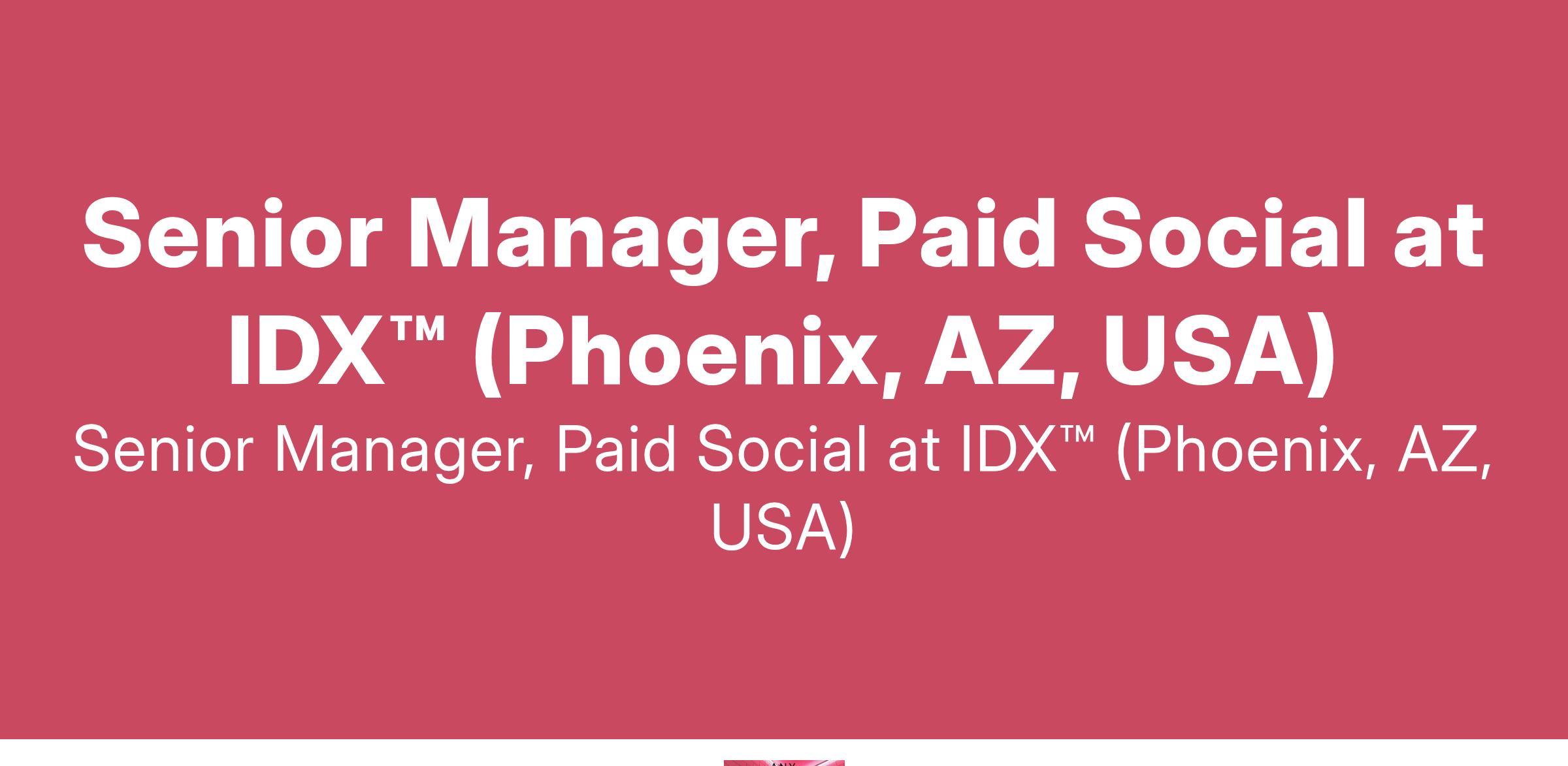 Senior Manager, Paid Social at IDX™ (Phoenix, AZ, USA)