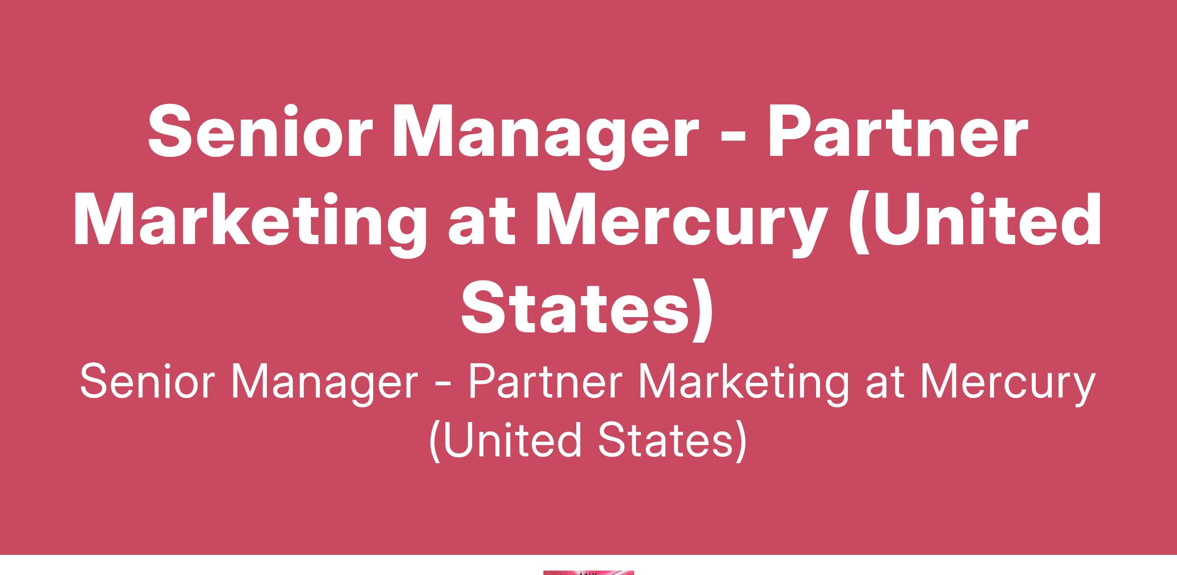 Senior Manager - Partner Marketing at Mercury (United States)
