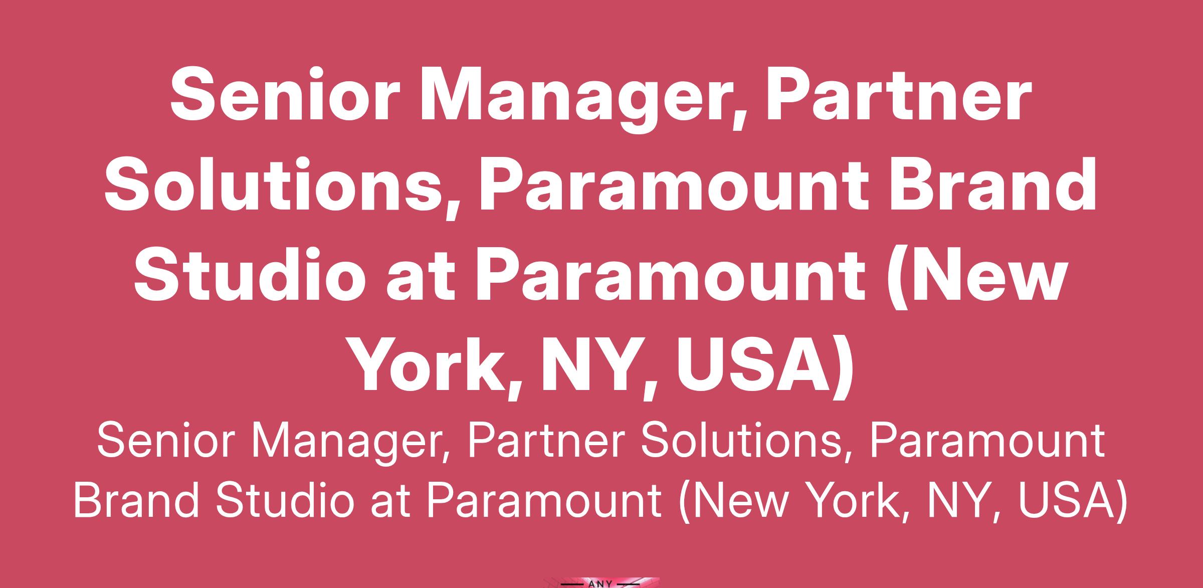 Senior Manager, Partner Solutions, Paramount Brand Studio at Paramount (New York, NY, USA)