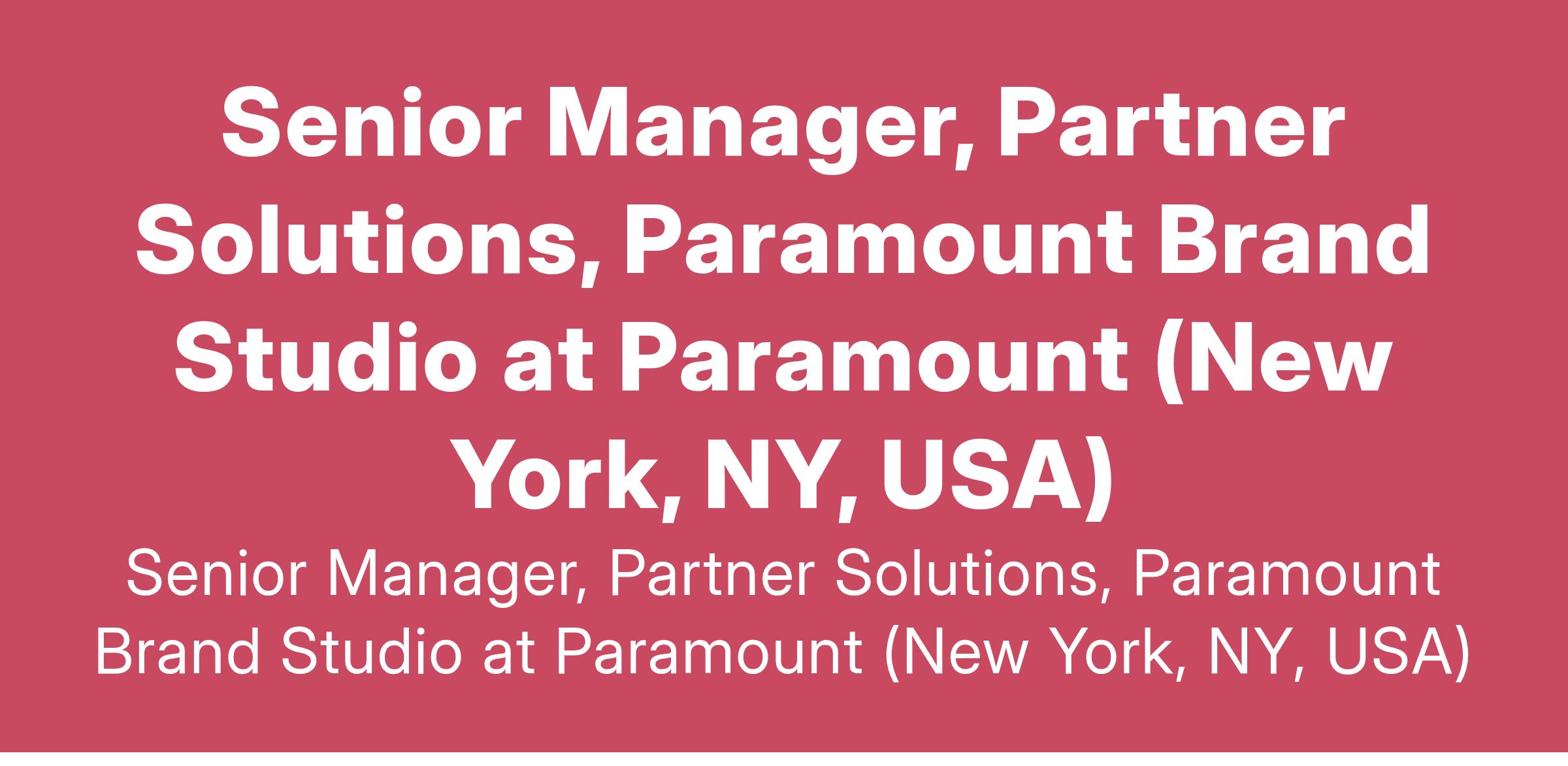 Senior Manager, Partner Solutions, Paramount Brand Studio at Paramount (New York, NY, USA)