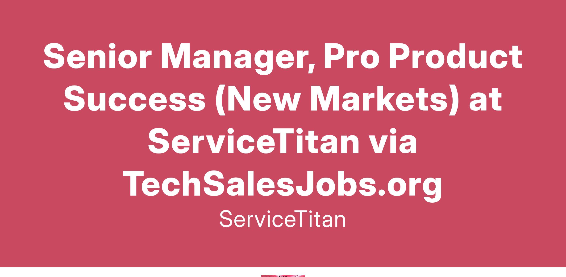 Senior Manager, Pro Product Success (New Markets) at ServiceTitan via TechSalesJobs.org