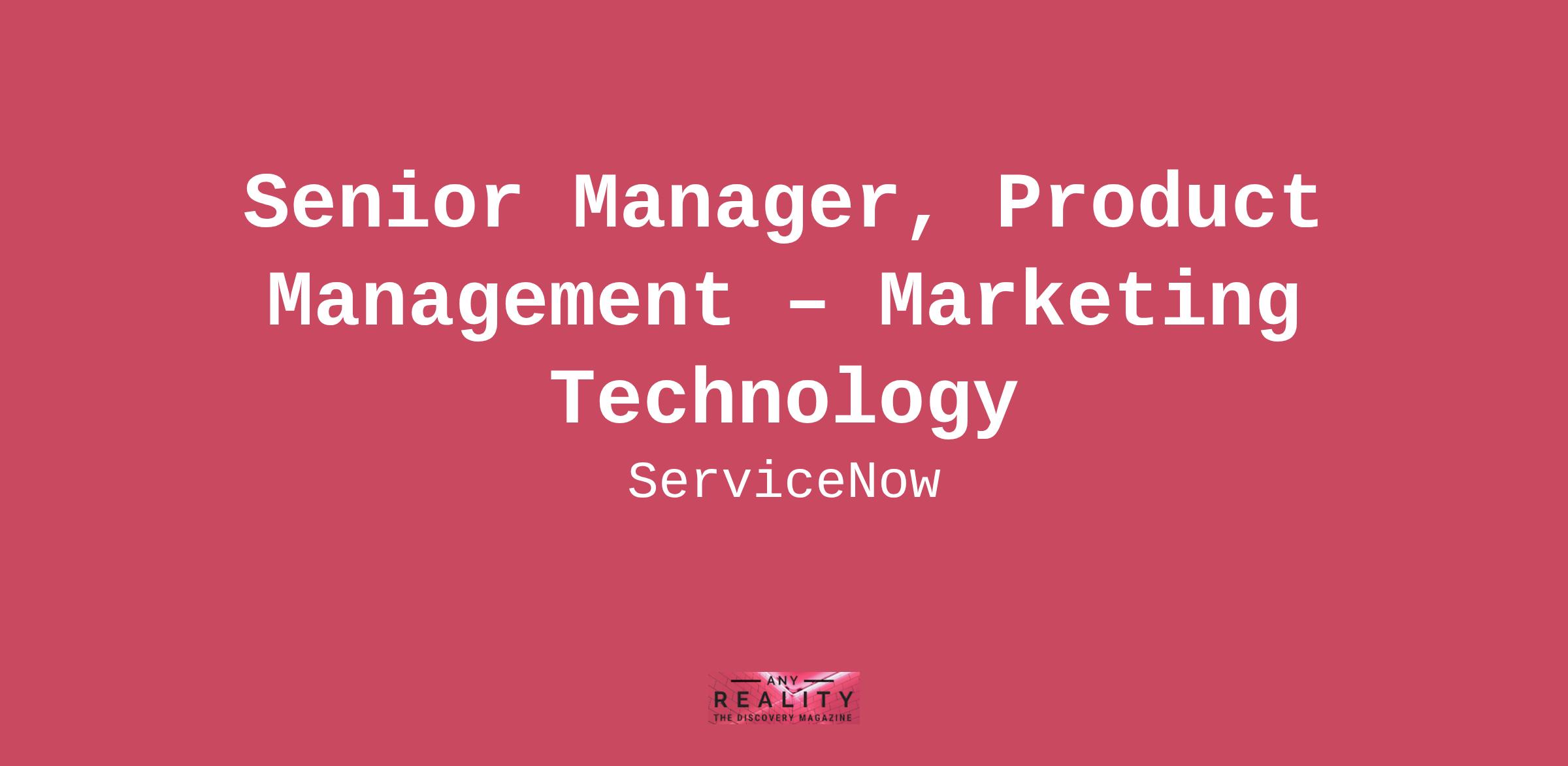 Company DescriptionIt all started in sunny San Diego, California in 2004 when a visionary engineer, Fred Luddy, saw the potential to transform how we work. Fast forward to today — ServiceNow stands as a global market leader, bringing innovative AI-enhanced technology to over 8,100 customers, including 85% of the Fortune 500®. Our intelligent cloud-based platform seamlessly connects people, systems, and processes to empower organizations to find smarter, faster, and better ways to work. But this is just the beginning of our journey. Join us as we pursue our purpose to make the world work better for everyone.Job DescriptionAbout the Role: We are seeking a bold, customer-obsessed Senior Manager of Product Management to join our Digital Technology Go-To-Market (GTM) team at ServiceNow. In this role, you will lead the strategy, design, and delivery of digital products that empower our global Marketing and Sales teams to drive growth, productivity, and exceptional customer experiences. You will bring a CEO mindset, a passion for human-centered design, and the ability to cut through bureaucracy to deliver outcomes. You’ll own product metrics, drive adoption, and lead with data to ensure our platforms deliver measurable business value. Key Responsibilities: Define and execute product strategy for GTM platforms that support marketing automation, sales enablement, and customer lifecycle engagement. Apply human-centered design principles to deeply understand user needs and craft intuitive, impactful experiences. Own product KPIs, adoption metrics, and business outcomes—using data to inform decisions and continuously improve. Partner with Engineering, Architecture, and Business stakeholders to deliver scalable, intelligent, and integrated solutions. Lead product discovery, define requirements, and prioritize roadmaps that align with strategic GTM goals. Champion a customer-obsessed culture, ensuring every product decision enhances user experience and drives value. Navigate complex organizational structures with a bias for action, challenging the status quo to accelerate innovation. Collaborate across functions to drive alignment, influence stakeholders, and deliver cross-functional initiatives. About Digital TechnologyWe’re not yesterday’s IT department—we're Digital Technology. The world around us keeps changing and so do we. We’re redefining what it means to be IT with a mindset centered on transformation, experience, AI-driven automation, innovation, and growth. We’re all about delivering delightful, secure customer and employee experiences that accelerate ServiceNow’s journey to become the defining enterprise software company of the 21st century. And we love co-creating, using, and highlighting our own products to do it. Ultimately, we strive to make the world work better for our employees and customers—when you work in ServiceNow Digital Technology, you work for them.QualificationsTo be successful in this role you have:Experience in leveraging or critically thinking about how to integrate AI into work processes, decision-making, or problem-solving. This may include using AI-powered tools, automating workflows, analyzing AI-driven insights, or exploring AI's potential impact on the function or industry.10+ years of experience in product management, with a strong track record in B2B SaaS or enterprise software. Deep expertise in human-centered design, product discovery, and iterative development. Strong business analysis skills and the ability to translate complex needs into clear, actionable product requirements. Proven ability to analyze data, derive insights, and drive decisions based on metrics and user behavior. Experience working with GTM technologies such as CRM (Salesforce, Microsoft Dynamics), CPQ, CLM, EMS, and Martech platforms (Adobe AEP, CDP, Marketo, AJO). Exceptional communication and stakeholder management skills. A CEO mindset—ownership, accountability, and a relentless focus on outcomes. Passion for delivering amazing user experiences and driving long-term customer success. Excellent cross-functional collaborator, able to influence and drive cross-functional teams toward a goal. History of teamwork and willingness to roll up sleeves to get things done. You’re a practitioner of Agile methodologies and making them work in different organizations and environments. Excellent written and oral communication, with the ability to communicate effectively on both technical and business topics; able to present equally effectively to an engineer or to a customer Self-directed with the ability to think strategically and execute tactically; attention to detail and proven ability to manage multiple, competing priorities simultaneously.Preferred Qualifications: Familiarity with the ServiceNow platform and solutions, including workflow automation and data fabric capabilities. Experience with AI/ML-powered product features and intelligent automation. Background in digital transformation, sales operations, or marketing technology. #DTjobsAdditional InformationWork PersonasWe approach our distributed world of work with flexibility and trust. Work personas (flexible, remote, or required in office) are categories that are assigned to ServiceNow employees depending on the nature of their work and their assigned work location. Learn more here. To determine eligibility for a work persona, ServiceNow may confirm the distance between your primary residence and the closest ServiceNow office using a third-party service.Equal Opportunity EmployerServiceNow is an equal opportunity employer. All qualified applicants will receive consideration for employment without regard to race, color, creed, religion, sex, sexual orientation, national origin or nationality, ancestry, age, disability, gender identity or expression, marital status, veteran status, or any other category protected by law. In addition, all qualified applicants with arrest or conviction records will be considered for empl