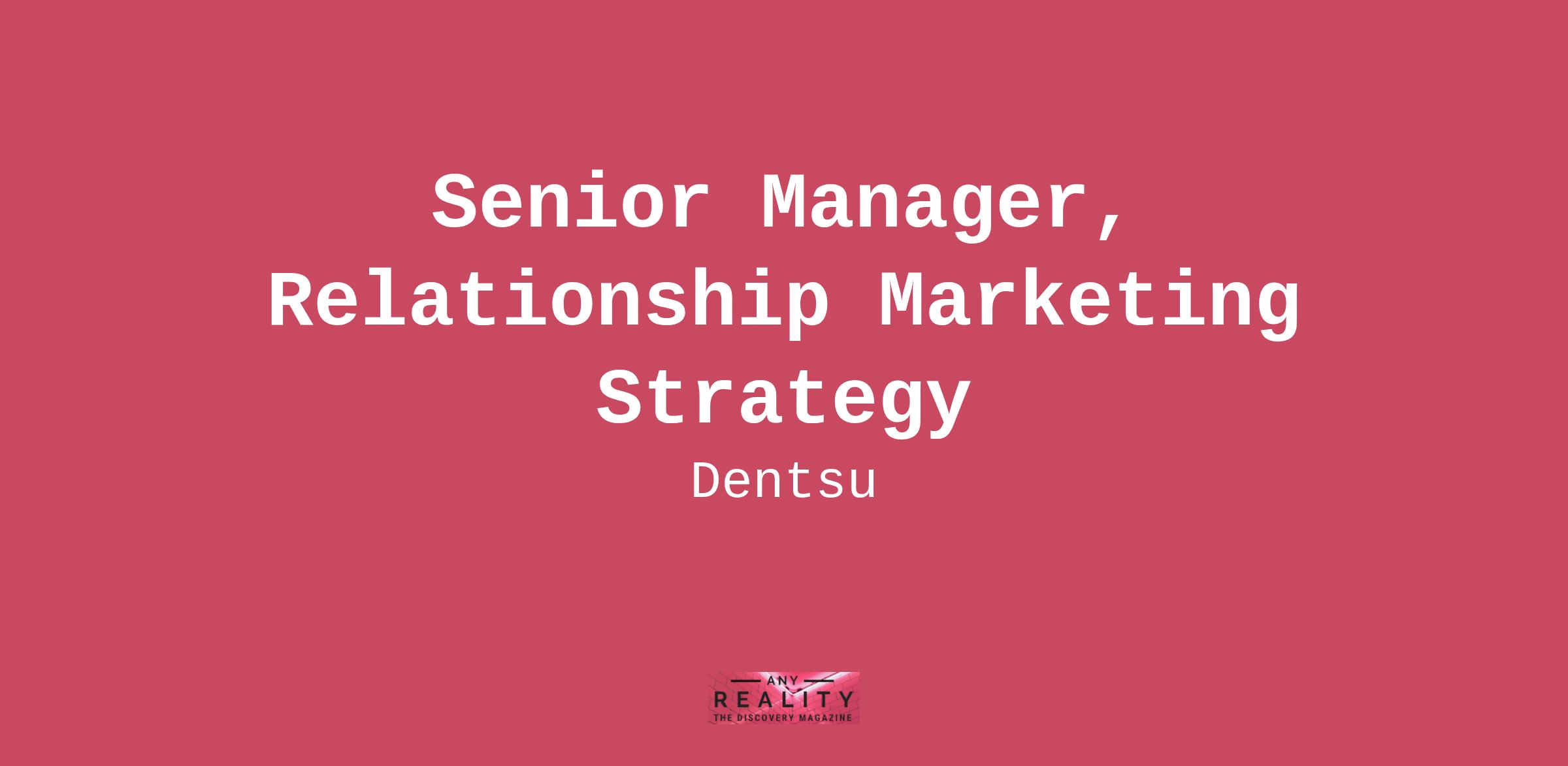 Job Description:We welcome remote U.S.-based candidatesMerkle is a leading data-driven, technology-enabled, global performance marketing agency that specializes in the delivery of unique, personalized customer experiences across platforms and devices. For more than 30 years, Fortune 1000 companies and leading nonprofit organizations have partnered with Merkle to maximize the value of their customer portfolios. The agency's heritage in data, technology, and analytics forms the foundation for its unmatched skills in understanding consumer insights that drive people-based marketing strategies.As Senior Manager, Relationship Marketing Strategy you will join a team of talented and experienced marketers who focus on helping Merkle clients achieve their business goals.You will report into the VP, Relationship Marketing Strategy. You understand our client's business and strategic goals. You'll appreciate the importance of relationships and work to become a trusted advisor to the client and Merkle account team. You will be a person who excels in both analytic and creative thinking and will help solve client problems. Your skills in communicating strategy allows others to believe in the ideas that you present, and follow that belief through to execution.To be successful in this role you have to love solving client problems, and understand how businesses, brands and customers work with one another, with an advanced understanding of the evolving role that data and technology play in this relationship. You can identify business growth opportunities and develop recommendations to help grow client relationships.Responsibilities:Lead the development of strategic omni-channel marketing plans.Be a subject matter expert and translate new technology - particularly in the areas of 1st party data marketing and CRM - into new marketing ideas for the client.Monitor current marketing trends, new technology solutions, and competitive strategies - and then translate them into new marketing ideas for clients.Develop trusted, long-term relationships with important client contacts and executives.Ensure meaningful client value is delivered through a mix of best-practice solutions, and original thinking.Collaborate with team leadership (account management, operations, creative, analytics), and partner agencies to turn ideas into executable plans.Identify data points and measurements to show the impact of our approach and strategy on our client's business.Qualifications:Bachelor's Degree required.7+ years' experience in data-driven marketing – specifically CRM, email, online/offline media3+ years working in an agency or consulting firm.Experience with Braze (advantageous if you have this!)Experience developing solutions to support the sale of new services to clients.Hands-on skills using data and research to guide decisions –proficiency in excel (can maintain complex spreadsheets) and research tools.Experience translating data analysis into relevant marketing recommendations and presentations – proficiency in PowerPoint.Comfort and experience working within a matrixed organization in roles with a wide degree of latitude.Average 20% travel (contingent on comfort level of client)The annual salary range for this position is $94,000-$152,375. Placement within the salary range is based on a variety of factors, including relevant experience, knowledge, skills, and other factors permitted by law.Benefits available with this position include:Medical, vision, and dental insurance,Life insurance,Short-term and long-term disability insurance,401k,Flexible paid time off,At least 15 paid holidays per year,Paid sick and safe leave, andPaid parental leave.Dentsu also complies with applicable state and local laws regarding employee leave benefits, including, but not limited to providing time off pursuant to the Colorado Healthy Families and Workplaces Act, in accordance with its plans and policies. For further details regarding Dentsu benefits, please visit www.dentsubenefitsplus.com.To begin the application process, please click on the "Apply" button at the top of this job posting. Applications will be reviewed on an ongoing basis, and qualified candidates will be contacted for next steps.#LI-LE1 #LI-Remote #LI-MerkleThis is a remote position.Location:USA - Remote - MarylandBrand:MerkleTime Type:Full timeContract Type:PermanentDentsu is committed to providing equal employment opportunities to all applicants and employees. We do this without regard to race, color, national origin, sex , sexual orientation, gender identity, age, pregnancy, childbirth or related medical conditions, ancestry, physical or mental disability, marital status, political affiliation, religious practices and observances, citizenship status, genetic information, veteran status, or any other basis protected under applicable federal, state, or local law. Dentsu is committed to providing reasonable accommodation to, among others, individuals with disabilities and disabled veterans. If you need an accommodation because of a disability to search and apply for a career opportunity with us, please send an e-mail to ApplicantAccommodations@dentsu.com by clicking on the link to let us know the nature of your accommodation request and your contact information. We are here to support you.