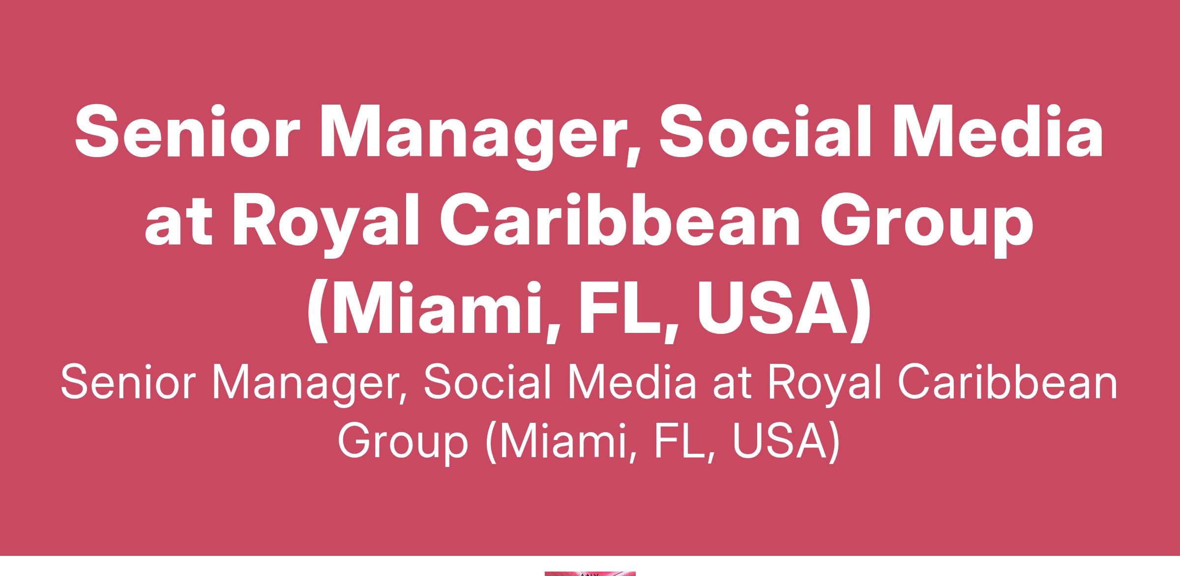 Senior Manager, Social Media at Royal Caribbean Group (Miami, FL, USA)