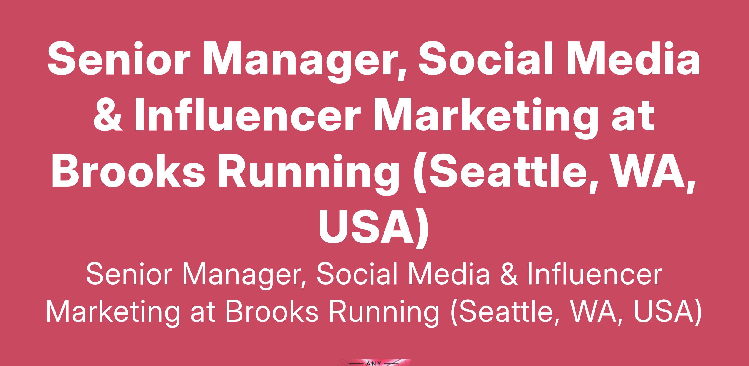 Senior Manager, Social Media & Influencer Marketing at Brooks Running (Seattle, WA, USA)