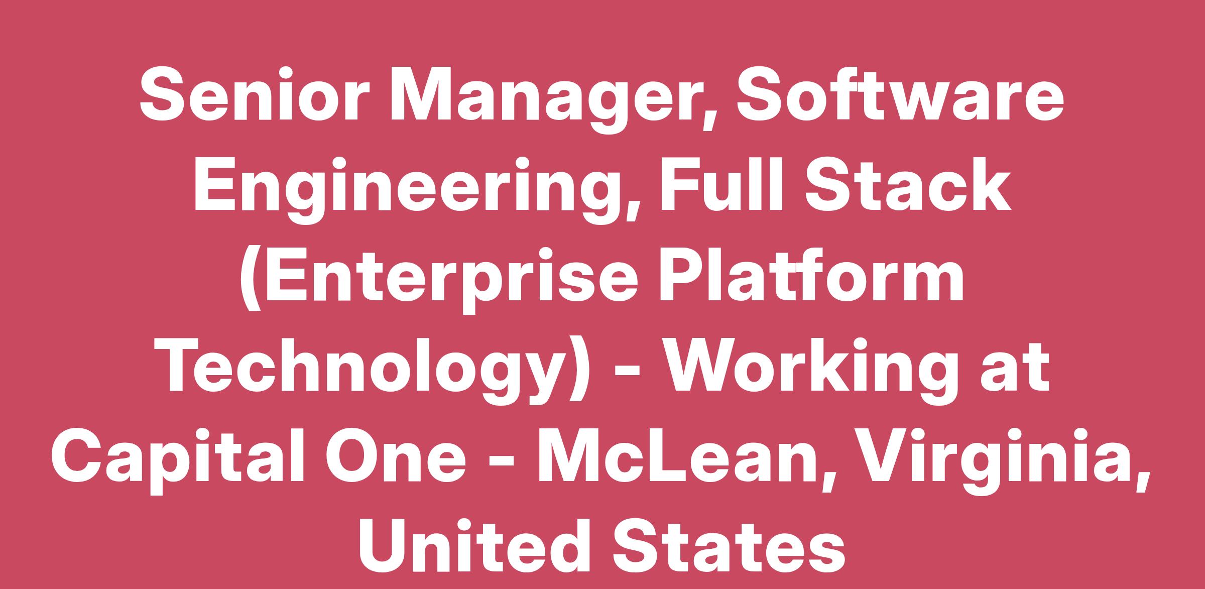 Do you love building and pioneering in the technology space? Do you enjoy solving complex business problems in a fast-paced, collaborative, inclusive, and iterative delivery environment? At Capital One, you'll be part of a big group of makers, breakers, doers and disruptors, who solve real problems and meet real customer needs. We are seeking Full Stack Software Engineers who are passionate about marrying data with emerging technologies. As a Capital One Sr. Manager Software Engineer, you’ll have the opportunity to be on the forefront of driving a major transformation within Capital One.