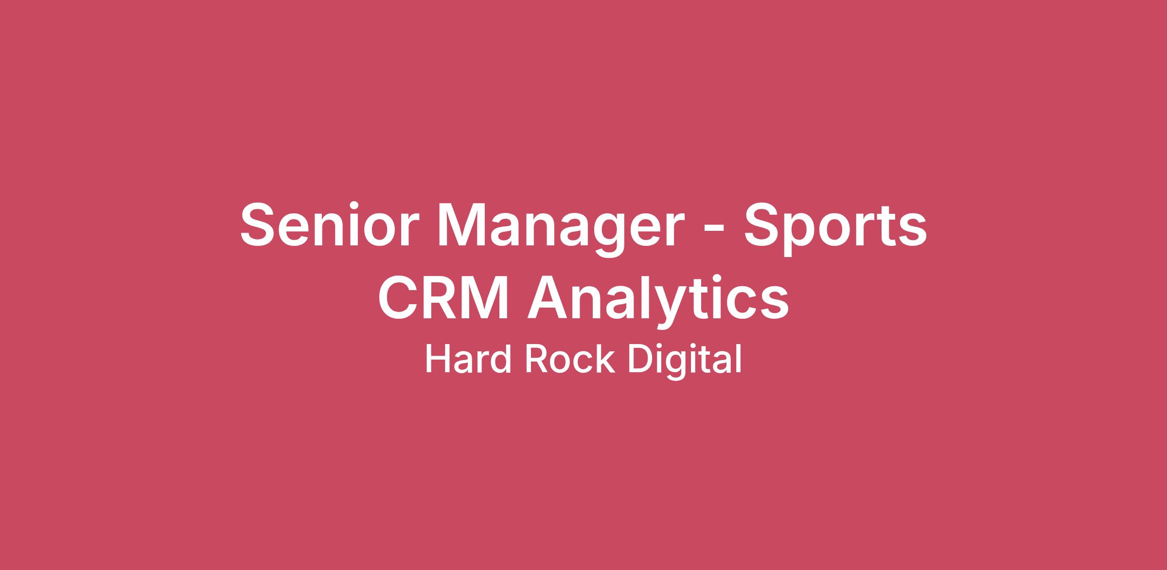 We are seeking a strategic and technically strong Senior Manager of Sports CRM Analytics to lead analytics and serve as the primary analytics partner for the Sports CRM team.
