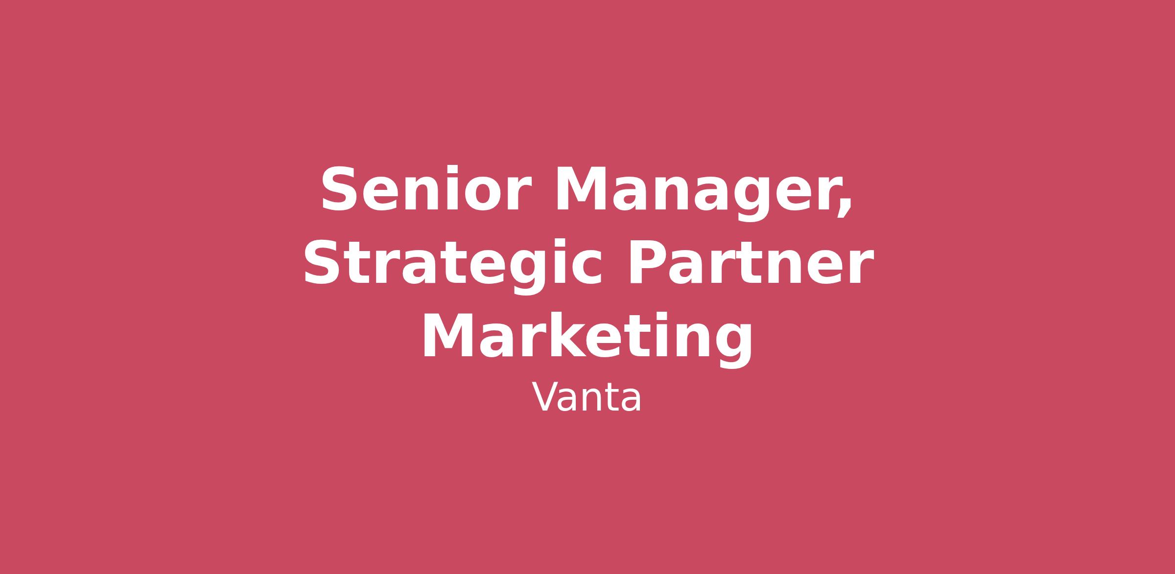At Vanta, our mission is to help businesses earn and prove trust. We believe that security should be monitored and verified continuously, and we empower companies to practice better security and prove it with ease. Vanta has a kind and talented team, and while some have prior security experience, many have been successful at Vanta without it. As a Senior Manager, Strategic Partner Marketing at Vanta, you will own the marketing strategy and growth motion for AWS and a portfolio of Vanta’s most strategic VAR partners — building executive relationships, crafting bold joint visions, and turning partnerships into measurable revenue engines.Strategic Partner Marketing at Vanta is responsible for unlocking growth through our most important ecosystem relationships. We work side-by-side with cloud providers and strategic resellers to identify mutual value benefits, define differentiated value propositions, open new routes to market, and accelerate pipeline and revenue. As Vanta scales, our ability to creatively and operationally maximize these partnerships will be the key driver of durable growth.This role is central to that ambition. You will be the marketing quarterback for AWS and 5–8 high-impact VAR partners — aligning executive stakeholders, building joint business plans, and bringing “the art of the possible” to life through high-impact, revenue-generating programs. You’ll operate with both strategic depth and startup scrappiness: thinking long-term about market expansion while rolling up your sleeves to get campaigns live, events launched, and deals accelerated.What you’ll do as a Senior Manager, Strategic Partner Marketing at Vanta:Shape and execute the partner marketing strategy for AWS and a portfolio of 5–8 strategic VAR partnersBuild and deepen relationships with partner marketing, alliance, and sales leaders — becoming a trusted advisor and go-to collaboratorDevelop and execute joint go-to-market strategies that drive partner-sourced and partner-influenced pipelineLead joint business planning, including quarterly planning sessions, shared KPIs, campaign roadmaps, and growth targetsCraft compelling joint value propositions and messaging frameworks that clearly articulate business outcomes for shared customersDesign and launch integrated campaigns across field marketing, demand gen, digital, and events — ensuring programs move from idea to execution quicklyCollaborate with partner sales teams to identify priority accounts and build account-based marketing strategies that accelerate deal velocityRepresent Vanta at AWS and VAR partner events, executive briefings, and industry engagementsPartner closely with Sales, Alliances, Product Marketing, Field Marketing, RevOps, and Marketing Ops to ensure alignment, visibility, and performance trackingMeasure and report on program impact, continuously optimizing based on pipeline contribution, influenced revenue, and ROIBuild scalable partner marketing playbooks and repeatable frameworks as we expand our ecosystemHow to be successful in this role:8–10+ years of B2B marketing experience, with strong focus on partner marketing in high-growth technology companiesDirect experience working with AWS (required) and experience supporting VAR or reseller ecosystems (required)Proven ability to build and execute joint go-to-market programs that drive measurable pipeline and revenue outcomesExperience managing executive-level relationships and influencing cross-functional stakeholders without direct authorityStrong understanding of enterprise buyer journeys and experience marketing to technical and business decision-makersAbility to think strategically about long-term partnership growth while operating with urgency and bias for actionComfortable in startup environments — resourceful, adaptable, and willing to step in wherever needed to ensure successStrong analytical orientation with the ability to connect marketing activity to business impactExceptional communication and storytelling skills, including executive-level presentationsHighly organized and able to manage multiple partners and workstreams simultaneouslyOpen to using AI to amplify their skills and strengthen their work - demonstrating curiosity, a willingness to learn, and sound judgment in applying AI responsibly to improve efficiency and impact.What you can expect as a Vanta’n:Industry-competitive salary and equityComprehensive medical, dental, and vision coverage, with 100% of employee-only benefit premiums covered for most medical plans16 weeks paid Parental Leave for all new parentsHealth & wellness stipendRemote workspace, internet, and cellphone stipendCommuter benefits for team members who report to the SF and NYC officeFamily planning benefitsMatching 401(k) contribution with immediate vestingFlexible PTO policy, plus 80 hours of Sick Time11 company-paid holidaysVirtual team building activities, lunch and learns, and other company-wide events!Offices in SF, NYC, London, Dublin, Tel Aviv, and SydneyTo provide greater transparency to candidates, we share base pay ranges for all US-based job postings regardless of state. We set standard base pay ranges for all roles based on function, level, and country location, benchmarked against similar-stage growth companies. Final offer amounts are determined by multiple factors and may vary based on candidate location, skills, depth of work experience, and relevant licenses/credentials. #LI-remoteAt Vanta, we are committed to hiring diverse talent of different backgrounds and as such, it is important to us to provide an inclusive work environment for all. We do not discriminate on the basis of race, gender identity, age, religion, sexual orientation, veteran or disability status, or any other protected class. As an equal opportunity employer, we encourage and welcome people of all backgrounds to apply.About VantaWe started in 2018, in the wake of several high-profile data breaches. Online security was only becoming more impor
