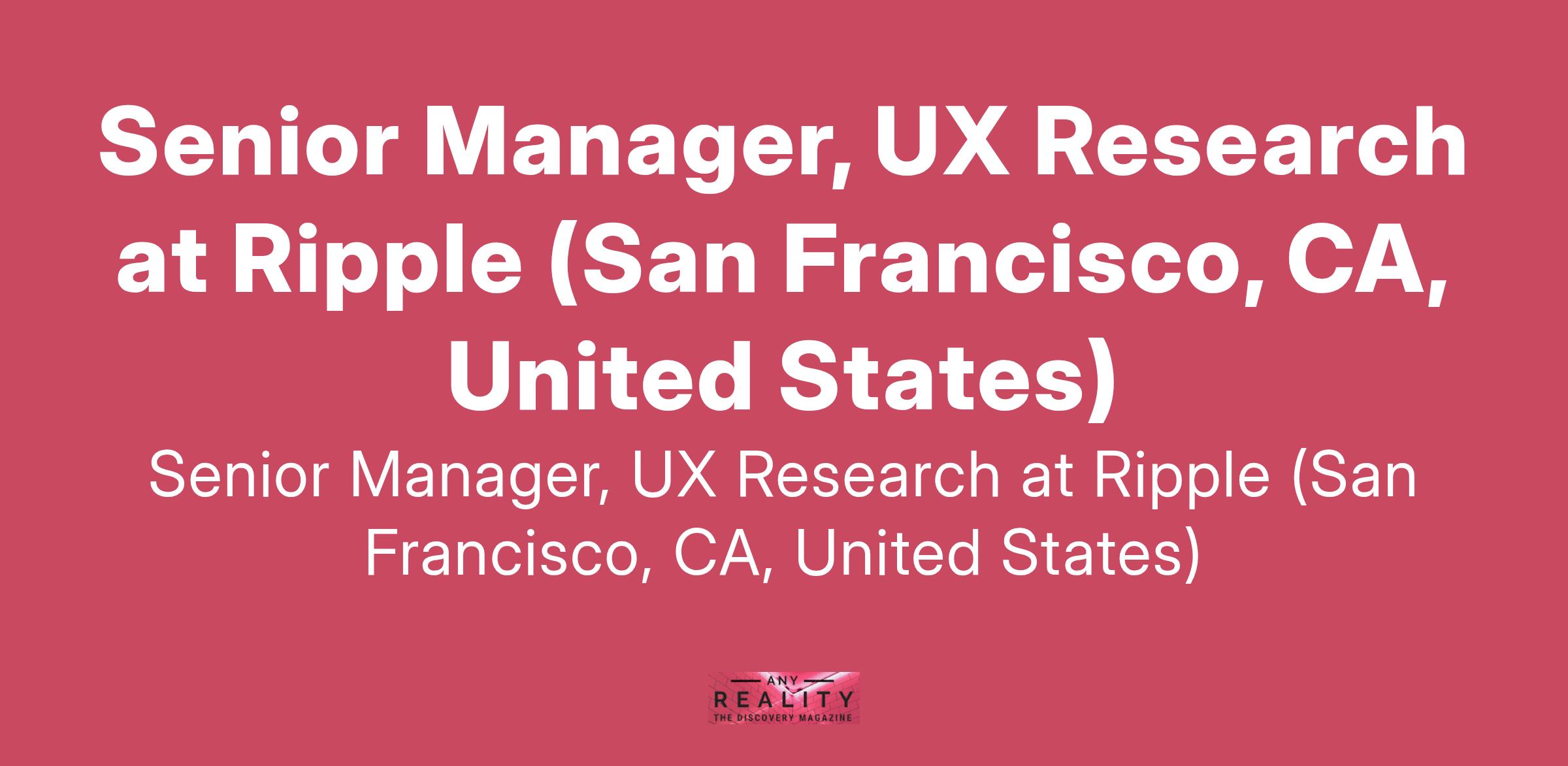 Senior Manager, UX Research at Ripple (San Francisco, CA, United States)