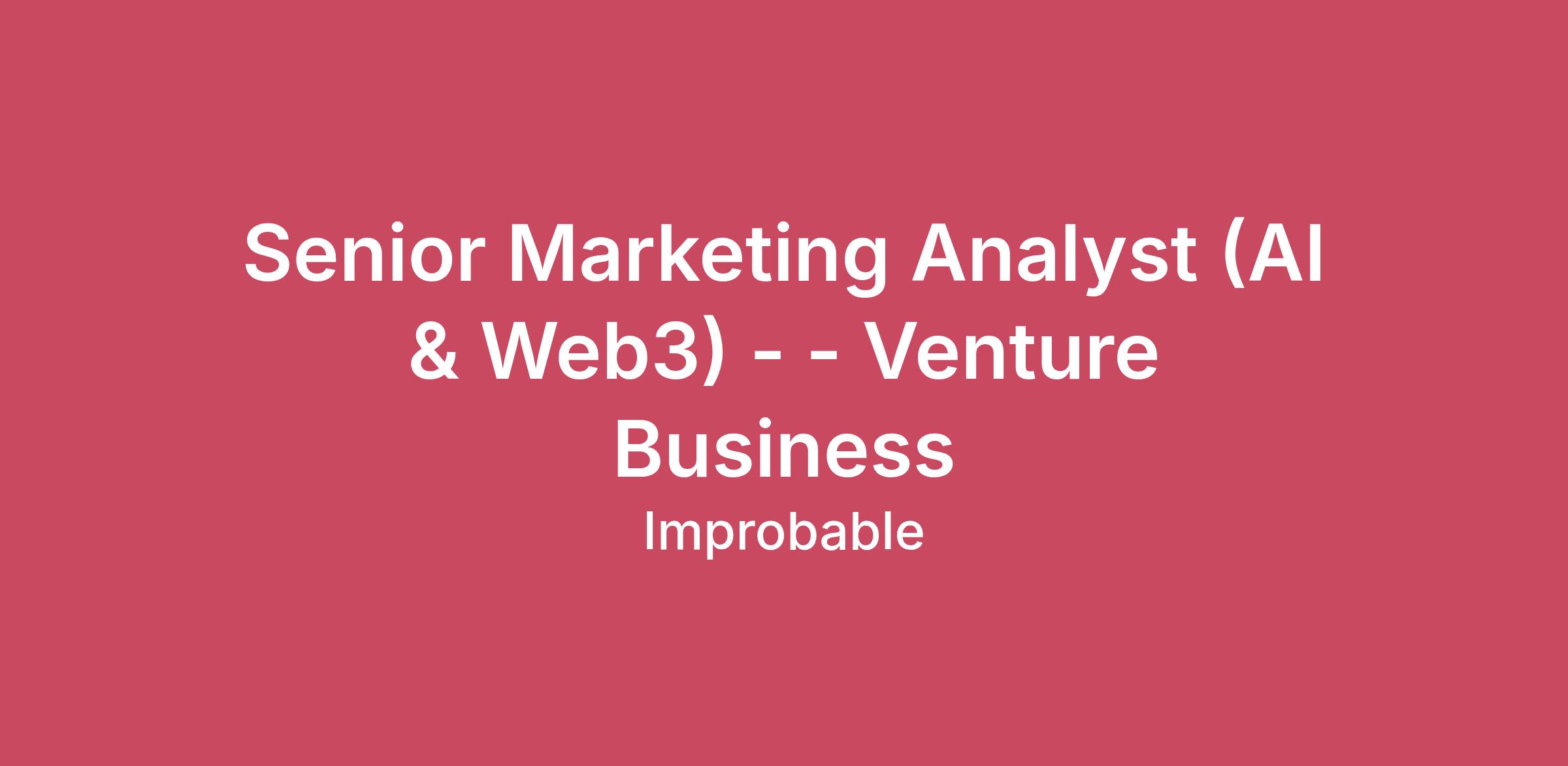 Senior Marketing Analyst (AI & Web3) - - Venture Business