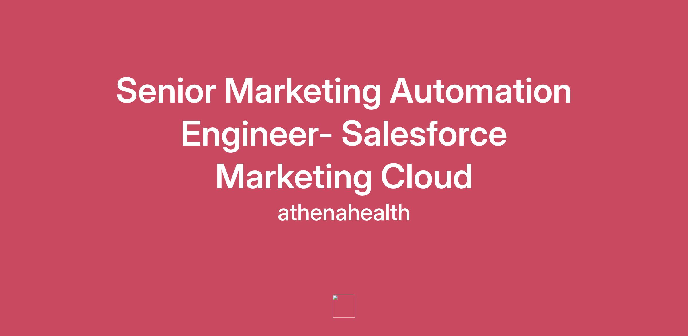 Join us as we work to create a thriving ecosystem that delivers accessible, high-quality, and sustainable healthcare for all.Position Overview: As a Senior Marketing Automation Engineer, on the athenaIT team at athenahealth, you will play a pivotal role in enabling advanced marketing capabilities across are marketing technology stack, including Salesforce Marketing Cloud Engagement (SFMCE) and Salesforce Data Cloud. This role requires deep technical expertise, strategic influence, and the ability to bridge the gap between marketing strategy and technology capabilities. You will design and implement scalable, data-driven marketing solutions, mentor team members, and ensure alignment between marketing strategies and enterprise technology standards.Key Responsibilities:Act as a trusted advisor to marketing stakeholders, aligning campaign strategies with platform capabilities and data architecture.Provide thought leadership on leveraging SFMCE, Data Cloud, and AI-driven personalization to optimize engagement.Design and implement advanced customer engagement journeys, segmentation strategies, and personalization using SFMCE and Data Cloud in collaboration with marketing strategy stakeholders.Configure and maintain data models, identity resolution, and audience segmentation within Salesforce Data Cloud.Integrate multiple data sources and destinations to enable unified customer profiles and real-time personalization.Implement AI-driven recommendations (e.g., Einstein, Agentforce), predictive scoring, and generative content capabilities within Marketing Cloud.Explore and deploy Agentforce solutions for marketing automation and conversational engagement.Develop and maintain automations, data extensions, and API integrations (REST/SOAP) for seamless data flow.Ensure compliance with data privacy regulations and maintain high standards for deliverability and reputation.Conduct peer reviews, troubleshoot technical issues, collaborate with QA resources to ensure quality deliverable hand offs.Document technical solutions and maintain version control for transparency and training.Mentor team members on advanced SFMC, Data Cloud, and AI capabilities.Stay current with Salesforce releases, AI advancements, and marketing technology trends to drive innovation.Qualifications:Bachelor’s degree in Computer Science, Information Technology, or related field preferred.5+ years of hands-on experience with Salesforce Marketing Cloud Engagement.Proven experience with Salesforce Data Cloud (formerly Data 360) for identity resolution, segmentation, and data activation.Salesforce Marketing Cloud Developer and Administrator certifications required.Salesforce Administrator, Data Cloud Consultant, and AI/Agentforce certifications highly preferred.Advanced proficiency in AMPscript, SSJS, SQL, HTML/CSS for dynamic content and data manipulation.Strong understanding of REST/SOAP APIs for integrations.Experience with CDP functionality, data modeling, and identity resolution.Familiarity with AI-driven personalization, predictive analytics, and generative content tools.Ability to understand performance metrics related to engagement, deliverability, and reputation.Excellent problem-solving skills and the ability to work in a fast-paced, collaborative environment.Strong communication, documentation, and interpersonal skills to work effectively with cross-functional teams.Attention to detail and a commitment to delivering high-quality technical solutions. Expected Compensation$119,000 - $203,000The base salary range shown reflects the full range for this role from minimum to maximum. At athenahealth, base pay depends on multiple factors, including job-related experience, relevant knowledge and skills, how your qualifications compare to others in similar roles, and geographical market rates. Base pay is only one part of our competitive Total Rewards package - depending on role eligibility, we offer both short and long-term incentives by way of an annual discretionary bonus plan, variable compensation plan, and equity plans. About athenahealthOur vision: In an industry that becomes more complex by the day, we stand for simplicity. We offer IT solutions and expert services that eliminate the daily hurdles preventing healthcare providers from focusing entirely on their patients — powered by our vision to create a thriving ecosystem that delivers accessible, high-quality, and sustainable healthcare for all.Our company culture: Our talented employees — or athenistas, as we call ourselves — spark the innovation and passion needed to accomplish our vision. We are a diverse group of dreamers and do-ers with unique knowledge, expertise, backgrounds, and perspectives. We unite as mission-driven problem-solvers with a deep desire to achieve our vision and make our time here count. Our award-winning culture is built around shared values of inclusiveness, accountability, and support.Our DEI commitment: Our vision of accessible, high-quality, and sustainable healthcare for all requires addressing the inequities that stand in the way. That's one reason we prioritize diversity, equity, and inclusion in every aspect of our business, from attracting and sustaining a diverse workforce to maintaining an inclusive environment for athenistas, our partners, customers and the communities where we work and serve.What we can do for you:Along with health and financial benefits, athenistas enjoy perks specific to each location, including commuter support, employee assistance programs, tuition assistance, employee resource groups, and collaborative workspaces — some offices even welcome dogs.We also encourage a better work-life balance for athenistas with our flexibility. While we know in-office collaboration is critical to our vision, we recognize that not all work needs to be done within an office environment, full-time. With consistent communication and digital collaboration tools, athenahealth enables employees to find a balance that feels fulfilli
