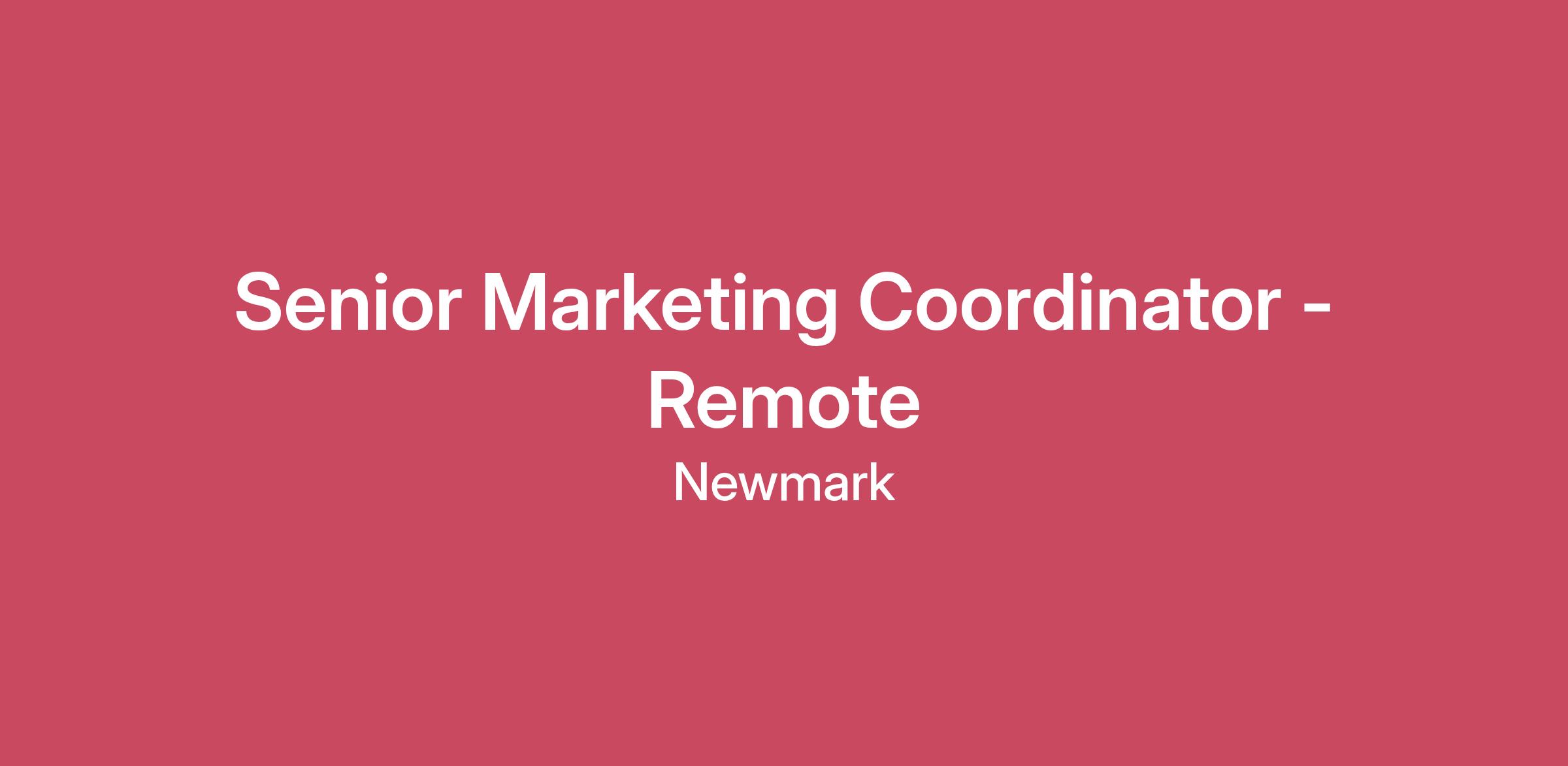 Core Responsibilities:The Marketing Coordinator / Senior Marketing Coordinator supports marketing initiatives for Newmark’s Property Management business. This role partners closely with property management market leaders across the country to develop high-quality marketing solutions, collateral, and communications that drive client retention, business growth, and tenant engagement. The ideal candidate is detail-oriented, collaborative, and proactive, with the ability to anticipate team needs and deliver polished, on-brand materials under tight deadlines.Develop familiarity with company programs, marketing technology, and service offerings to effectively support property management marketing initiatives.Follow Newmark branding guidelines to ensure consistency across all marketing materials.Participate in team meetings; understand objectives, capture action items, and proactively anticipate needs to keep projects on track.Collaborate with cross-functional partners to create marketing solutions that support pursuits, client communications, property onboarding, operations initiatives, and tenant engagement.Assist in developing marketing collateral, including presentations, proposals/RFP responses, brochures, pitchbooks, case studies, fact sheets, and email communications.Create and maintain marketing files, templates, and compliance documentation (brand/legal approvals, disclosures, vendor forms) to ensure consistency and audit readiness.Maintain informational marketing databases and libraries (bios/resumes, property stats, service line sheets, case studies, awards, imagery, floor plans) to ensure accuracy and version control.Coordinate logistics for pursuits, including timelines, content collection, and stakeholder reviews.Perform other duties as assigned.Core CompetenciesExcellent communication, organizational, and time-management skills.Superior grammatical and writing abilities.Exceptional working knowledge of Adobe Creative Cloud Suite (InDesign, Illustrator, Photoshop, Premiere Pro)Intermediate working knowledge of Microsoft Office 365 (particularly Outlook and PowerPoint)Ability to prioritize, multitask, and meet tight deadlines.Experience creating marketing pitches, presentations, property marketing collateral, websites/landing pages, digital and print advertisements, social media marketing, etc.Can convert research-based data into a visually compelling story for presentations, market updates, infographics, graphs, etc.Preferred Skills/Experience3+ years Marketing Coordinator experienceKnowledge of commercial real estate industry.Video editing/creation using Premiere Pro.Troubleshooting and problem-solving skills.Ability to work independently and collaboratively.Mac and PCHTML/CSSSalary: $75,000 - $82,500 annuallyThe expected base salary for this position ranges from $75,000 to $82,500 annually. The actual base salary will be determined on an individualized basis taking into account a wide range of factors including, but not limited to, relevant skills, experience, education, and, where applicable, licenses or certifications held. In addition to base salary and a competitive benefits package, this position may be eligible for additional types of compensation including discretionary bonuses and other short- and long-term incentives (e.g., deferred cash, equity, etc.).Working Conditions: Normal working conditions with the absence of disagreeable elementsNote: The statements herein are intended to describe the general nature and level of work being performed by employees and are not to be construed as an exhaustive list of responsibilities, duties, and skills required of personnel so classified.Newmark is an Equal Opportunity/Affirmative Action employer. All qualified applicants will receive consideration for employment without regard to race, color, religion, sex including sexual orientation and gender identity, national origin, disability, protected Veteran Status, or any other characteristic protected by applicable federal, state, or local law.