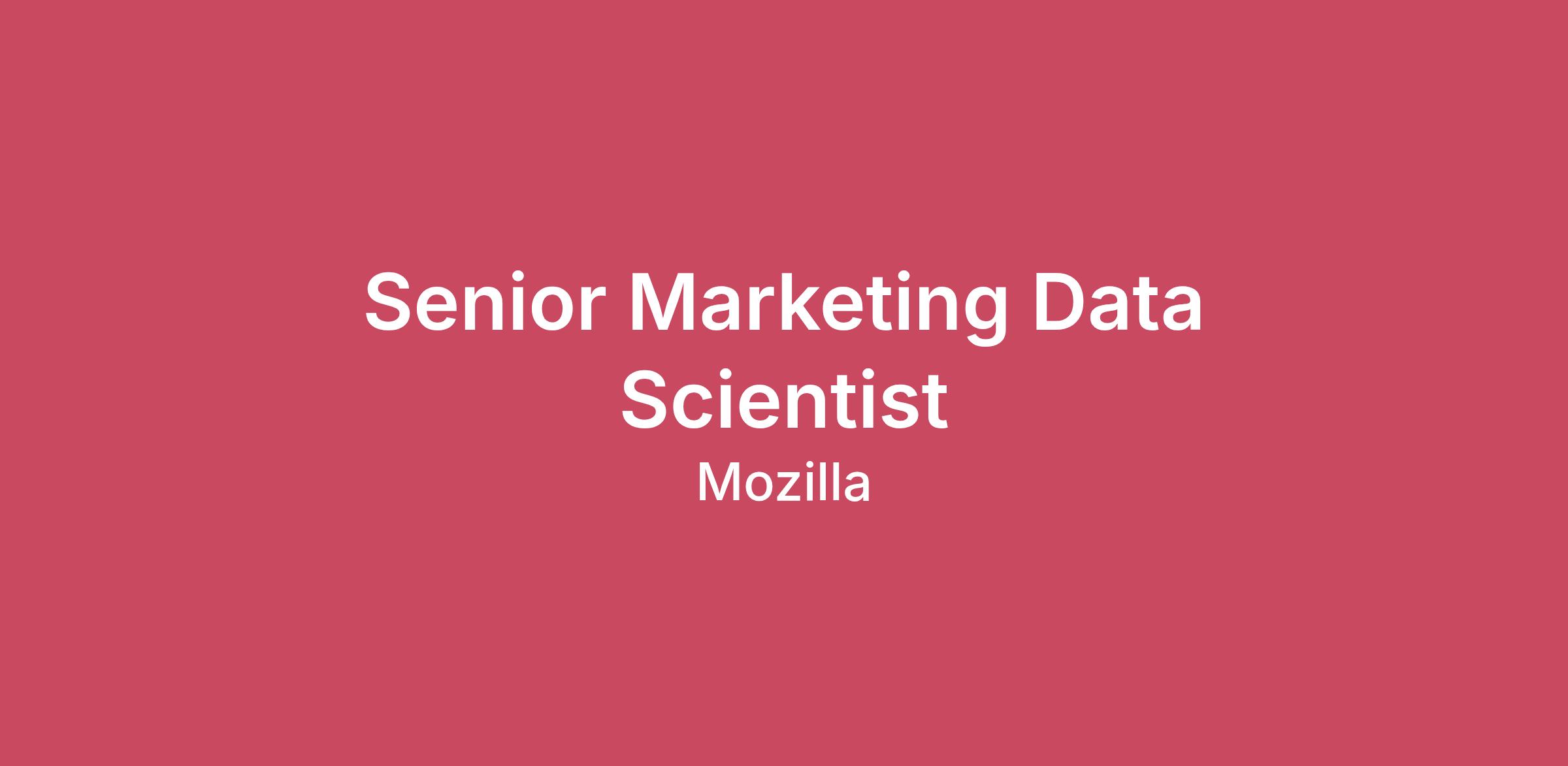 Why Mozilla? Mozilla Corporation is the non-profit-backed technology company that has shaped the internet for the better over the last 25 years. We make pioneering brands like Firefox, the privacy-minded web browser. Now, with more than 225 million people around the world using our products each month, we’re shaping the next 25 years of technology and helping to reclaim an internet built for people, not companies. Our work focuses on diverse areas including AI, social media, security and more. And we’re doing this while never losing our focus on our core mission – to make the internet better for people. The Mozilla Corporation is wholly owned by the non-profit 501(c) Mozilla Foundation. This means we aren’t beholden to any shareholders — only to our mission. Along with thousands of volunteer contributors and collaborators all over the world, Mozillians design, build and distribute open-source software that enables people to enjoy the internet on their terms. About this team and role: The Marketing Data Science team sits within the broader Product Data Science organization and provides comprehensive analytical support and thought partnership to Marketing to guide responsible and effective investment decisions. Our work centers on end-to-end measurement solutions that seek to quantify the true return of our marketing efforts—touching measurement instrumentation, data modeling, experiment design, execution, and the translation of insights into actionable recommendations. Beyond measurement, we support KPI forecasting, budget allocation, self-service reporting, and a wide range of advanced statistical modeling solutions. As a Senior Data Scientist, you will take a hands-on role in answering complex marketing questions and navigating a dynamic, often imperfect data environment. You will leverage your strong analytical skills, technical depth, and business domain understanding to uncover insights, refine existing tactics, and help identify new opportunities to enhance Marketing’s impact. What you’ll do: Own marketing tests end-to-end, leveraging and contributing to our Python-based measurement workflows. Collaborate with senior ICs to address critical data infrastructure needs, support org-wide migrations, and develop new analytical and measurement solutions. Develop reporting and monitoring tools that surface business insights and increase visibility into marketing performance and impact. Conduct deep-dive analyses to investigate questions related to performance, audiences, monetization, attribution, and data integrity. Provide flexible analytical support across the team’s project portfolio, taking high-level direction from senior ICs while independently owning specific components of the solution. What you’ll bring: 2–3 years of experience conducting quantitative analyses, ideally within a marketing or growth environment. Master’s degree or higher in a computer, mathematical, physical, life, or social science discipline (preferred). Strong SQL skills and experience working with relational databases (e.g., BigQuery, Redshift) to extract, transform, and synthesize data. Proficiency with visualization and reporting tools, such as Python, Looker, or Redash, and experience building clear, actionable reporting solutions. Knowledge of core statistical methods used for hypothesis testing and analytical inference. Experience with geo experiments or synthetic control models (e.g., CausalImpact, GeoLift) is a plus. Familiarity with digital marketing and measurement platforms (e.g., Google Analytics, Google Ads, Meta Business Suite) is a plus. Strong analytical and problem-solving skills, with the ability to translate data into clear insights, recommendations, and next steps, communicated concisely and transparently. Commitment to our values: Welcoming differences Being relationship-minded Practicing responsible participation Having grit What you’ll get: Generous performance-based bonus plans to all eligible employees - we share in our success as one team Rich medical, dental, and vision coverage Generous retirement contributions with 100% immediate vesting (regardless of whether you contribute) Quarterly all-company wellness days where everyone takes a pause together Country specific holidays plus a day off for your birthday One-time home office stipend Annual professional development budget Quarterly well-being stipend Considerable paid parental leave Employee referral bonus program Other benefits (life/AD&D, disability, EAP, etc. - varies by country) About Mozilla Mozilla exists to build the Internet as a public resource accessible to all because we believe that open and free is better than closed and controlled. When you work at Mozilla, you give yourself a chance to make a difference in the lives of Web users everywhere. And you give us a chance to make a difference in your life every single day. Join us to work on the Web as the platform and help create more opportunity and innovation for everyone online. Commitment to diversity, equity, inclusion, and belonging Mozilla understands that valuing diverse creative practices and forms of knowledge are crucial to and enrich the company’s core mission. We encourage applications from everyone, including members of all equity-seeking communities, such as (but certainly not limited to) women, racialized and Indigenous persons, persons with disabilities, persons of all sexual orientations, gender identities, and expressions. We will ensure that qualified individuals with disabilities are provided reasonable accommodations to participate in the job application or interview process, to perform essential job functions, and to receive other benefits and privileges of employment, as appropriate. Please contact us at hiringaccommodation@mozilla.com to request accommodation. We are an equal opportunity employer. We do not discriminate on the basis of race (including hairstyle and texture), religion (including religious grooming and dress