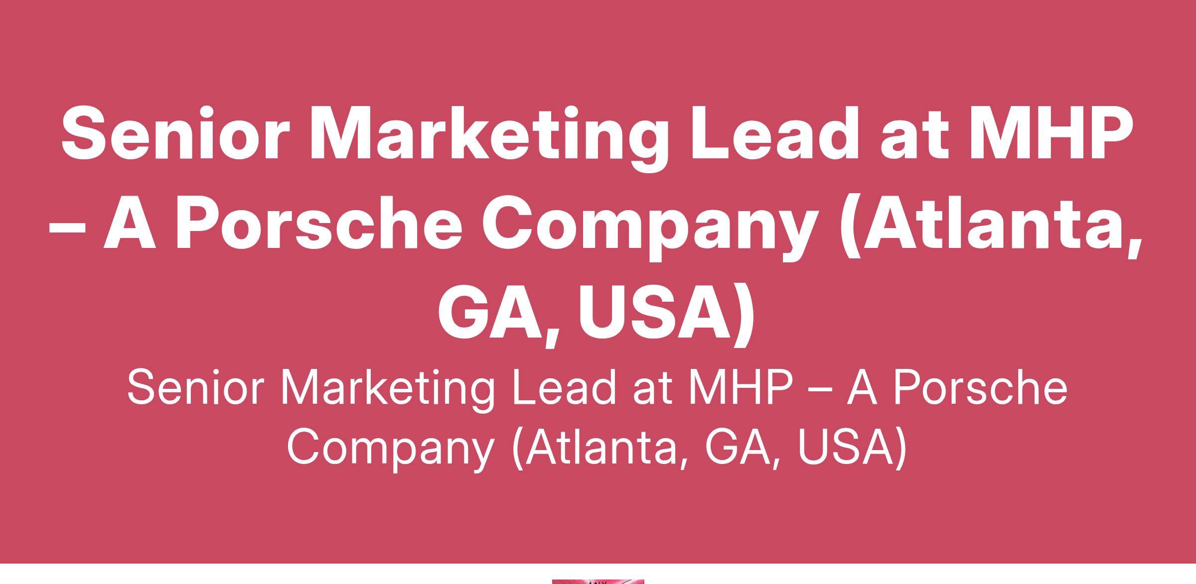 Senior Marketing Lead at MHP – A Porsche Company (Atlanta, GA, USA)