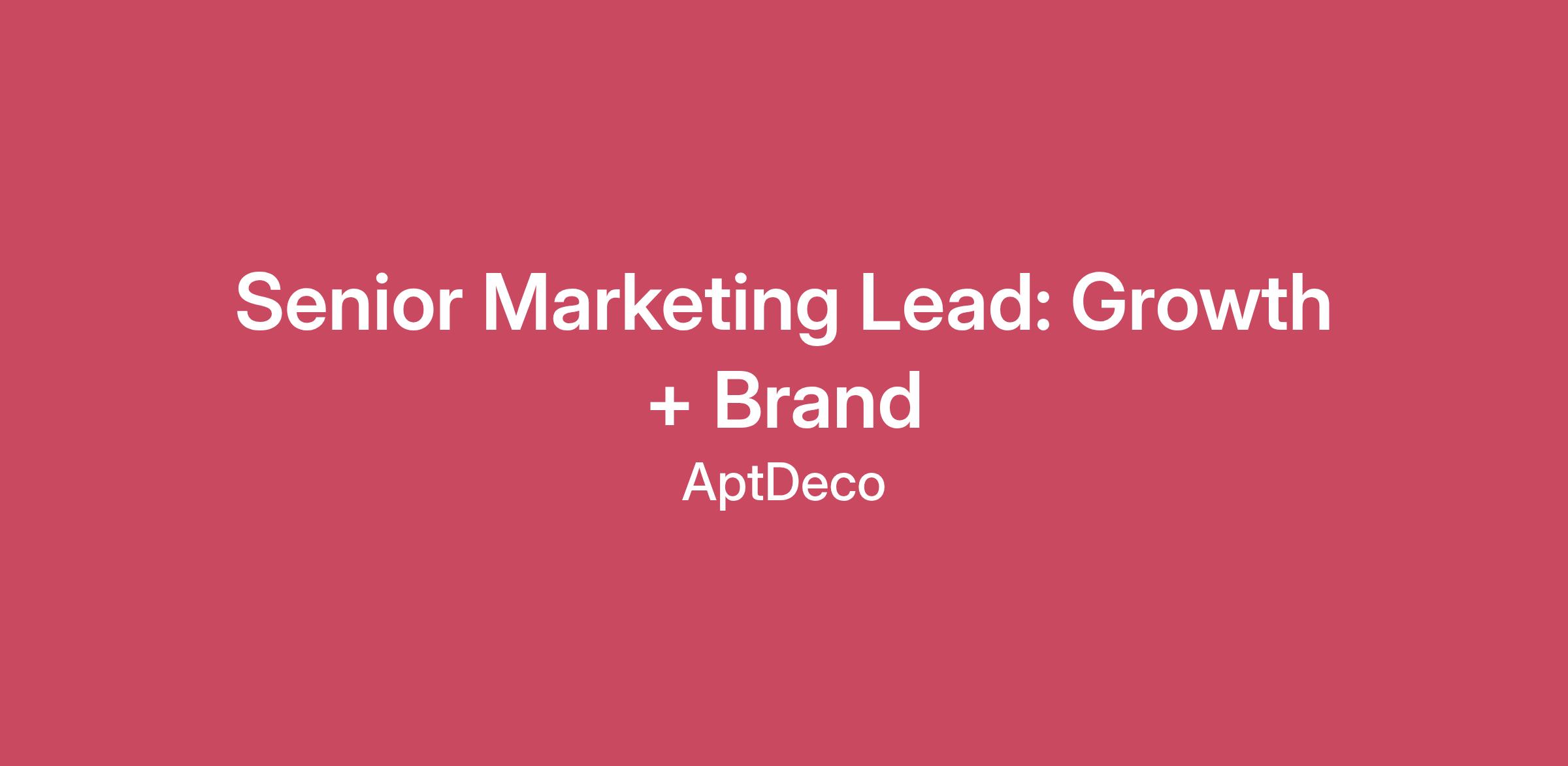 Senior Marketing Lead: Growth + Brand