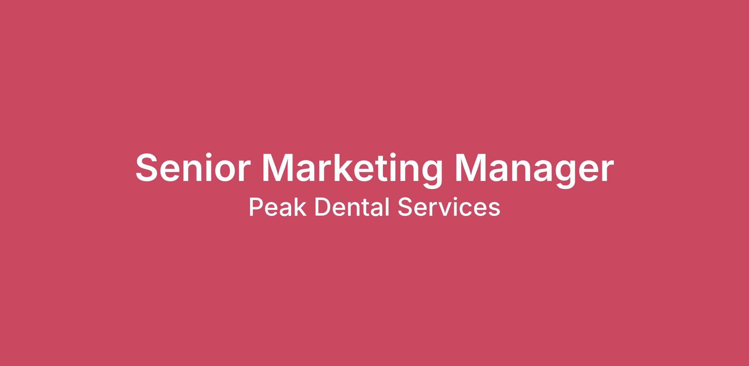 Company Overview Senior Marketing Manager (Remote) Location: Remote (Priority given to candidates located in Colorado or Texas) Travel: 10–15% as needed Reports to: Vice President of Marketing Job Responsibilities: Join our Marketing team reporting directly to the VP of Marketing to help build a growing network of affiliated dental practices for an innovative and fast-growing PE-backed company. Peak Dental Services has made Inc. 5000’s list of fastest growing companies multiple times. The Senior Marketing Manager is responsible for providing leadership and supervision for the Human Resources and Talent Acquisition team comprising of 5 direct reports today supporting 600+ employees with planned growth to exceed 1,000 employees within 2-3 years. Position Summary We are seeking a strategic and results-driven Senior Marketing Manager to lead and execute performance-focused marketing initiatives across a multi-site organization. This role will play a critical part in building and optimizing marketing plans, analyzing performance and budgets, and partnering cross-functionally with Dentist leaders and Operations to drive growth. The ideal candidate thrives in a fast-paced environment, values transparency, and brings a data-driven mindset with strong execution skills. We are looking for a Data Driven and Analytical Senior Marketing Manager to work in alignment with Peak Dental Services Core Values. About Us: We are a dental service organization (DSO) providing support services (call center, marketing, insurance management, payroll), clinical autonomy, administrative leadership, and better work-life balance to dentists. We believe what sets us apart from other DSOs is our people and our training systems. We have dedicated experts in a wide range of disciplines to support our partner dentists from hiring to billing. Further, we have custom-designed a professional development path with over 125 hours of continuing education for all team members. Our commitment to high-quality staff and training enables our dental teams to perform on-par with customer experience titans such as Starbucks, Ritz, and Nordstrom’s, and we believe that both our partner dentists and our patients can see the difference. Competitive compensation offered with best-in-class bonus opportunities and unrivaled opportunities for professional growth and promotions. Healthcare benefits, 401K matching, paid holidays, and other benefits offered. Compensation · Salary range: Starting in the low $100,000s annually, negotiable based on experience and qualifications (DOE) Apply today or send your CV and Cover Letter to: Alysia.silletto@peakdentalservices.com Essential Functions Essential Functions · Develop, implement, and optimize comprehensive marketing plans aligned with business and growth objectives · Lead performance marketing initiatives for a multi-site organization, including campaign strategy, execution, and optimization · Conduct market research to identify trends, competitive insights, and growth opportunities · Manage and analyze marketing budgets, ensuring efficient allocation and ROI tracking · Leverage data analytics to measure performance, report on KPIs, and provide actionable insights · Collaborate cross-functionally with Dentist leaders, Operations, and other internal stakeholders to support business initiatives · Utilize CRM platforms (HubSpot, Salesforce, or similar) to manage campaigns, track performance, and improve lead workflows · Prepare and present marketing reports and recommendations to senior leadership · Ensure consistency of brand messaging across all channels · Maintain strong attention to detail while managing multiple projects simultaneously Qualifications Required Qualifications · Bachelor's degree in business, Marketing, or a related field · 7+ years of experience in a Marketing Manager or Senior Marketing Manager role · Proven experience in performance marketing within a multi-site or multi-location environment · Strong background in market research, marketing strategy development, and budget analysis · Advanced data analytics skills with the ability to interpret and act on performance metrics · Hands-on experience with CRM platforms such as HubSpot, Salesforce, or similar tools · Proficiency in Microsoft Office Suite, including Excel; experience with Power BI required · Excellent written and verbal communication skills · Strong organizational skills with the ability to multitask and meet deadlines in a fast-paced environment Preferred Qualifications · Master’s degree in Marketing or a related field · Experience supporting healthcare, dental, or service-based organizations Knowledge/Skills/Abilities Core Competencies · High attention to detail · Strategic and analytical thinking · Strong collaboration and cross-functional partnership skills · Adaptability and openness to continuous learning · Commitment to transparency and accountability Supervisory Responsibility None Pay RangeUSD $100,000.00 - USD $120,000.00 /Yr.