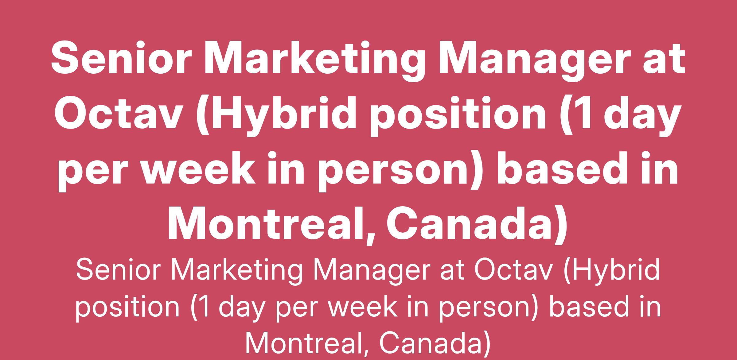 Senior Marketing Manager at Octav (Hybrid position (1 day per week in person) based in Montreal, Canada)