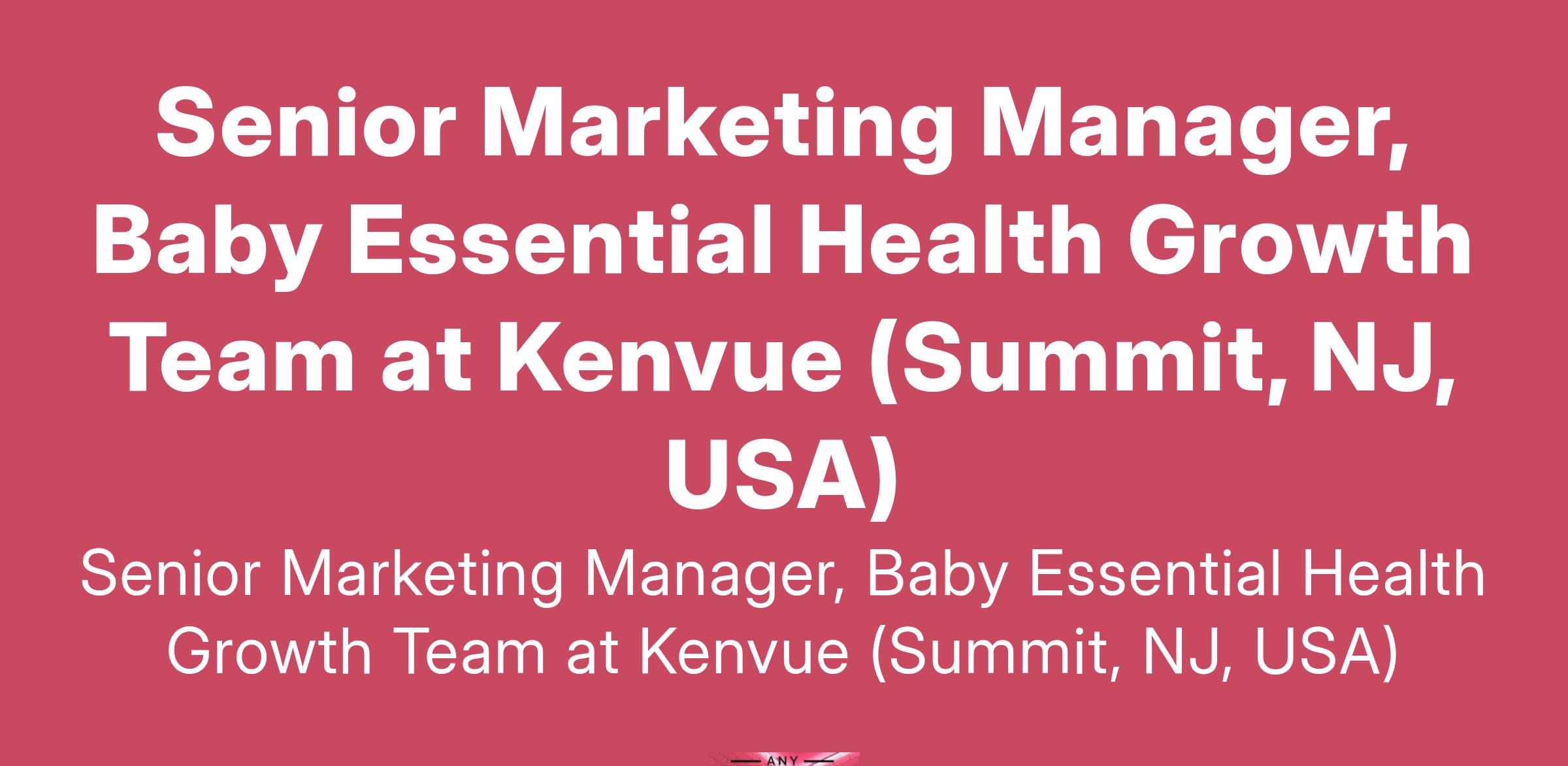 Senior Marketing Manager, Baby Essential Health Growth Team at Kenvue (Summit, NJ, USA)