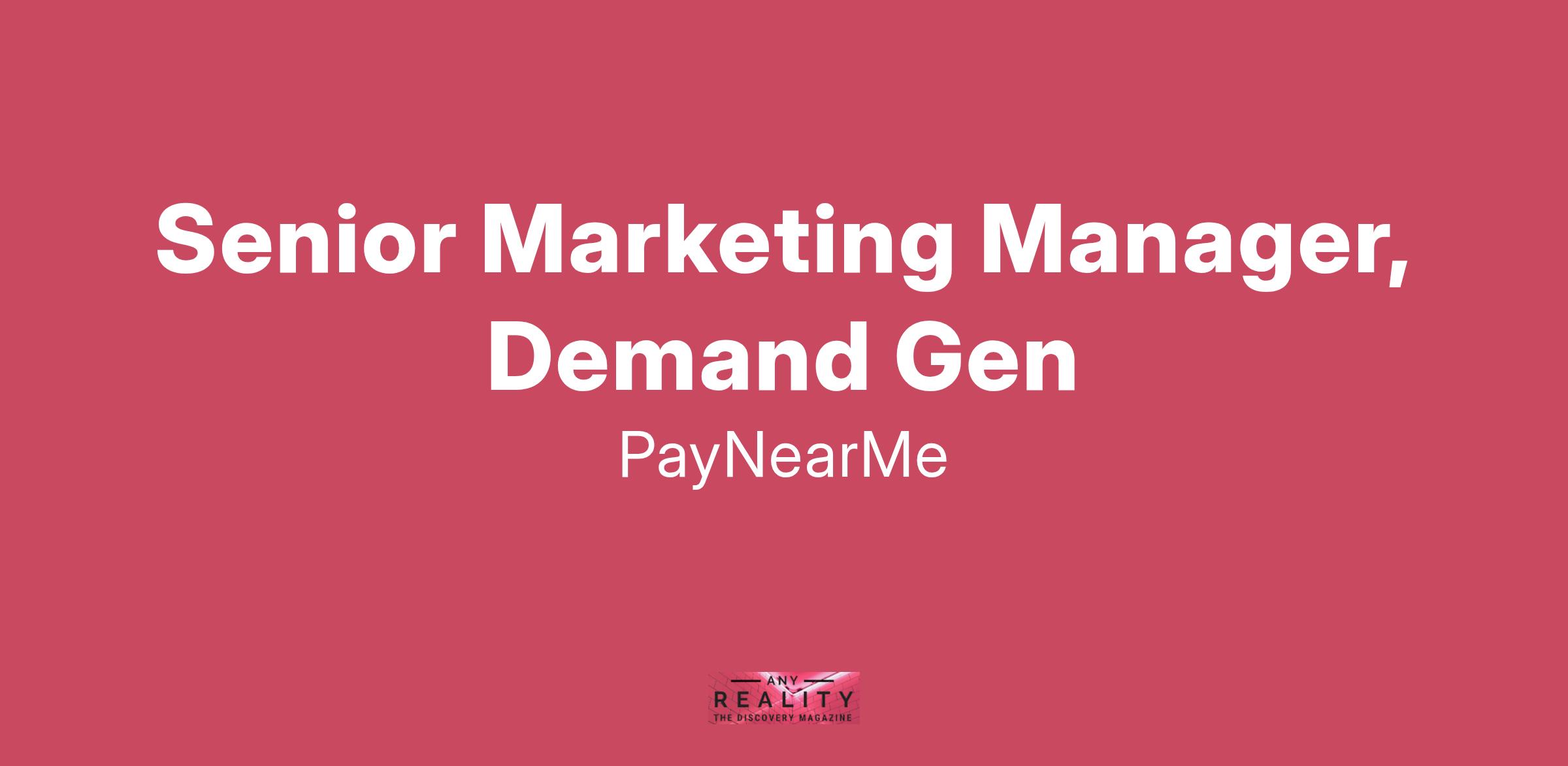 The Sr. Marketing Manager, Demand Gen will take ownership of large-scale demand gen marketing initiatives by developing, executing, and influencing programs to drive awareness, demand and opportunity creation in the Financial Institutions & Lending vertical at PayNearMe.