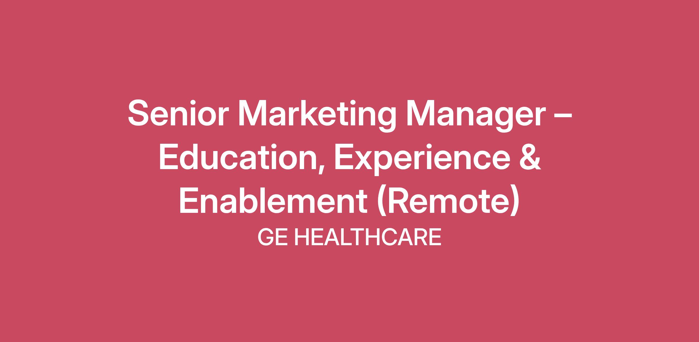 Job Description SummaryThe Senior Marketing Manager will lead initiatives that enhance customer experience, deliver impactful education programs, and turn insights into action to drive adoption of advanced cardiac imaging solutions at imaging sites. This role focuses on developing education programs for key stakeholders and creating strategies that improve the end-to-end experience for imaging centers. The position also manages conference strategy and accreditation partnerships to strengthen market presence and credibility.Job DescriptionKey ResponsibilitiesEducation Programs:Design and deliver educational content for healthcare professionals, including readers, technologists, and administrators.Maintain and enhance existing education initiatives for consistency and scalability.Customer Onboarding & Success:Develop strategies to improve onboarding and engagement for imaging sites.Partner with cross-functional teams to identify pain points and implement solutions that elevate customer satisfaction.Insights into Action:Collaborate with Insights & Market Research team to interpret market research data.Translate findings into actionable strategies for education, onboarding and experience programs.Lead think tanks and advisory boards to gather qualitative insights to inform strategic actions.Conversion Enablement:Support initiatives that help imaging sites adopt advanced cardiac imaging solutions through tailored education and experience programs.Ensure operational readiness and smooth implementation in collaboration with internal teams.Conference Strategy & Messaging:Plan and execute conference participation, including booth experience, educational sessions, and messaging alignment.Coordinate presentations to reinforce brand positioning.Certification & Accreditation Partnerships:Build and maintain relationships with professional societies and certification bodies to support educational and accreditation programs.Ensure compliance with industry standards and guidelines.Qualifications & ExperienceBachelor’s degree in Science, Marketing, Business, or related field; MBA preferred.8+ years of pharmaceutical or medical diagnostics marketing experience, including product launch, strategy and lifecycle management.Cardiology, Nuclear Medicine, Nuclear Cardiology experience preferred.Strong background in education program development, customer experience strategy, and insights application.Experience supporting diagnostic or radiopharmaceutical adoption or conversion initiatives in healthcare.Excellent communication and stakeholder management skills.Key CompetenciesStrategic thinking and execution excellence.Ability to manage multiple projects and deliver results in a fast-paced environment.Strong collaboration and cross-functional leadership.Data-driven approach to measure impact and optimize programs.We will not sponsor individuals for employment visas, now or in the future, for this job opening. For U.S. based positions only, the pay range for this position is $145,600.00-$218,400.00 Annual. It is not typical for an individual to be hired at or near the top of the pay range and compensation decisions are dependent on the facts and circumstances of each case. The specific compensation offered to a candidate may be influenced by a variety of factors including skills, qualifications, experience and location. In addition, this position may also be eligible to earn performance based incentive compensation, which may include cash bonus(es) and/or long term incentives (LTI). GE HealthCare offers a competitive benefits package, including not but limited to medical, dental, vision, paid time off, a 401(k) plan with employee and company contribution opportunities, life, disability, and accident insurance, and tuition reimbursement.Additional InformationGE HealthCare offers a great work environment, professional development, challenging careers, and competitive compensation. GE HealthCare is an Equal Opportunity Employer. Employment decisions are made without regard to race, color, religion, national or ethnic origin, sex, sexual orientation, gender identity or expression, age, disability, protected veteran status or other characteristics protected by law.GE HealthCare will only employ those who are legally authorized to work in the United States for this opening. Any offer of employment is conditioned upon the successful completion of a drug screen (as applicable). While GE HealthCare does not currently require U.S. employees to be vaccinated against COVID-19, some GE HealthCare customers have vaccination mandates that may apply to certain GE HealthCare employees.Relocation Assistance Provided: NoApplication Deadline: February 27, 2026