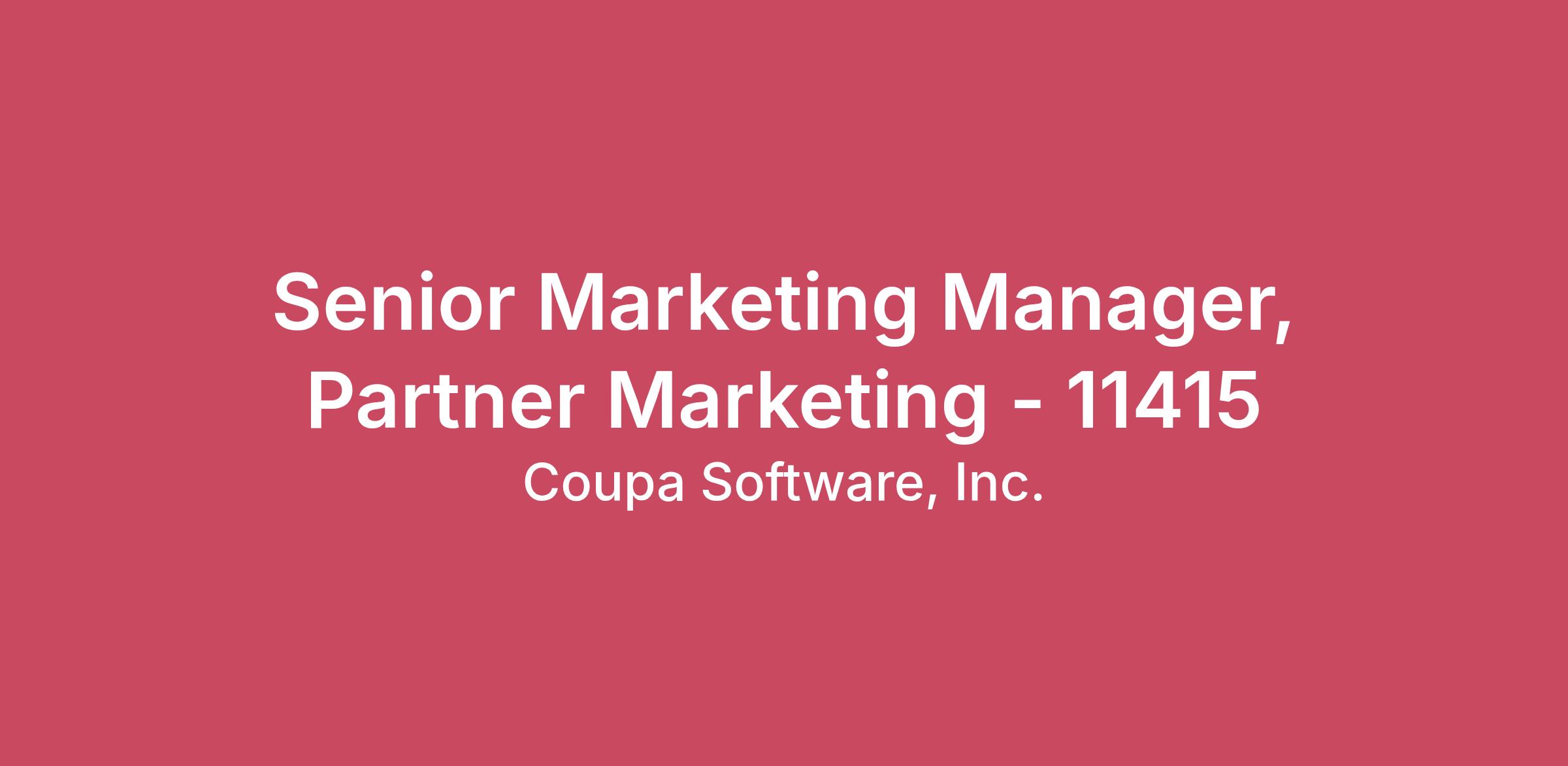 Coupa makes margins multiply through its community-generated AI and industry-leading total spend management platform for businesses large and small. Coupa AI is informed by trillions of dollars of direct and indirect spend data across a global network of 10M+ buyers and suppliers. We empower you with the ability to predict, prescribe, and automate smarter, more profitable business decisions to improve operating margins.Why join Coupa? Pioneering Technology: At Coupa, we're at the forefront of innovation, leveraging the latest technology to empower our customers with greater efficiency and visibility in their spend. Collaborative Culture: We value collaboration and teamwork, and our culture is driven by transparency, openness, and a shared commitment to excellence. Global Impact: Join a company where your work has a global, measurable impact on our clients, the business, and each other. Learn more on Life at Coupa blog and hear from our employees about their experiences working at Coupa. The Impact of a Senior Marketing Manager, Partner Marketing at Coupa: Coupa is seeking a dynamic and experienced Senior Marketing Manager to drive partner marketing strategies and initiatives across key strategic partnerships, including AWS. This role will be instrumental in fostering strong relationships, enabling partner success, and ultimately accelerating pipeline growth and revenue. The ideal candidate will possess a deep understanding of B2B marketing, partner ecosystems, with a proven track record of impactful results. \nWhat You’ll Do Strategic Partner Engagement: Develop and execute comprehensive marketing plans tailored to AWS and Global Systems Integration Partners, aligning with overall business objectives and revenue goals. To-Partner Communication Strategy & Execution: Develop and implement effective communication strategies to engage key partners and their prospects. This includes developing campaigns, creating newsletters, email sequences, training materials, and other lead generating activities. To-Coupa Communication Strategy: Act as the voice of our partners within Coupa, developing strategies to communicate partner needs, feedback, and market insights to internal stakeholders, including product, sales, and executive leadership. Content and Campaign Development: Collaborate with partners to create compelling, co-branded marketing content, including campaign offerings, case studies, whitepapers, webinars, and sales enablement materials, that resonate with their target audiences. Demand Generation: Design and implement demand generation programs to drive qualified leads and pipeline, leveraging various channels such as email, digital advertising, and events. Program Management: Project manage partner marketing initiatives from concept to execution, ensuring timely delivery, budget adherence, and measurable results. Event Liaison: Serve as a liaison to the Partner Organization and Coupa's events team for key internal and external events, ensuring partner representation, engagement, and successful execution of co-marketing activities. Performance Analysis: Monitor, analyze, and report on the performance of partner marketing campaigns, using data-driven insights to optimize strategies and demonstrate ROI. Cross-functional Collaboration: Work closely with internal teams including alliances, sales, product marketing, content, and customer marketing to ensure seamless integration and consistent messaging across all partner-facing activities. Market Intelligence: Gather and analyze market trends, competitor activities, and partner feedback to identify new opportunities and areas for optimization within the partner ecosystem. What You Will Bring to Coupa 5+ years of experience in B2B enterprise software, specializing in partner, channel, or alliance marketing Proven track record of developing and executing successful marketing strategies Strong cross-functional influence and relationship-building skills with internal teams and external partners Excellent project and budget management abilities, handling multiple priorities and optimizing marketing spend Data-driven mindset with experience using marketing automation and CRM tools (e.g., Marketo, Salesforce) to measure performance Strategic, adaptable, and self-motivated communicator with strong critical thinking skills and a relevant bachelor’s degree \nThe estimated pay range for this role is $128,000 - $166,500 The starting salary for the successful candidate will be based on permissible, non-discriminatory factors such as skills, experience, and geographic location. #LI-TC1 #LI-RemoteCoupa complies with relevant laws and regulations regarding equal opportunity and offers a welcoming and inclusive work environment. Decisions related to hiring, compensation, training, or evaluating performance are made fairly, and we provide equal employment opportunities to all qualified candidates and employees. Please be advised that inquiries or resumes from recruiters will not be accepted.By submitting your application, you acknowledge that you have read Coupa’s Privacy Policy and understand that Coupa receives/collects your application, including your personal data, for the purposes of managing Coupa's ongoing recruitment and placement activities, including for employment purposes in the event of a successful application and for notification of future job opportunities if you did not succeed the first time. You will find more details about how your application is processed, the purposes of processing, and how long we retain your application in our Privacy Policy.
