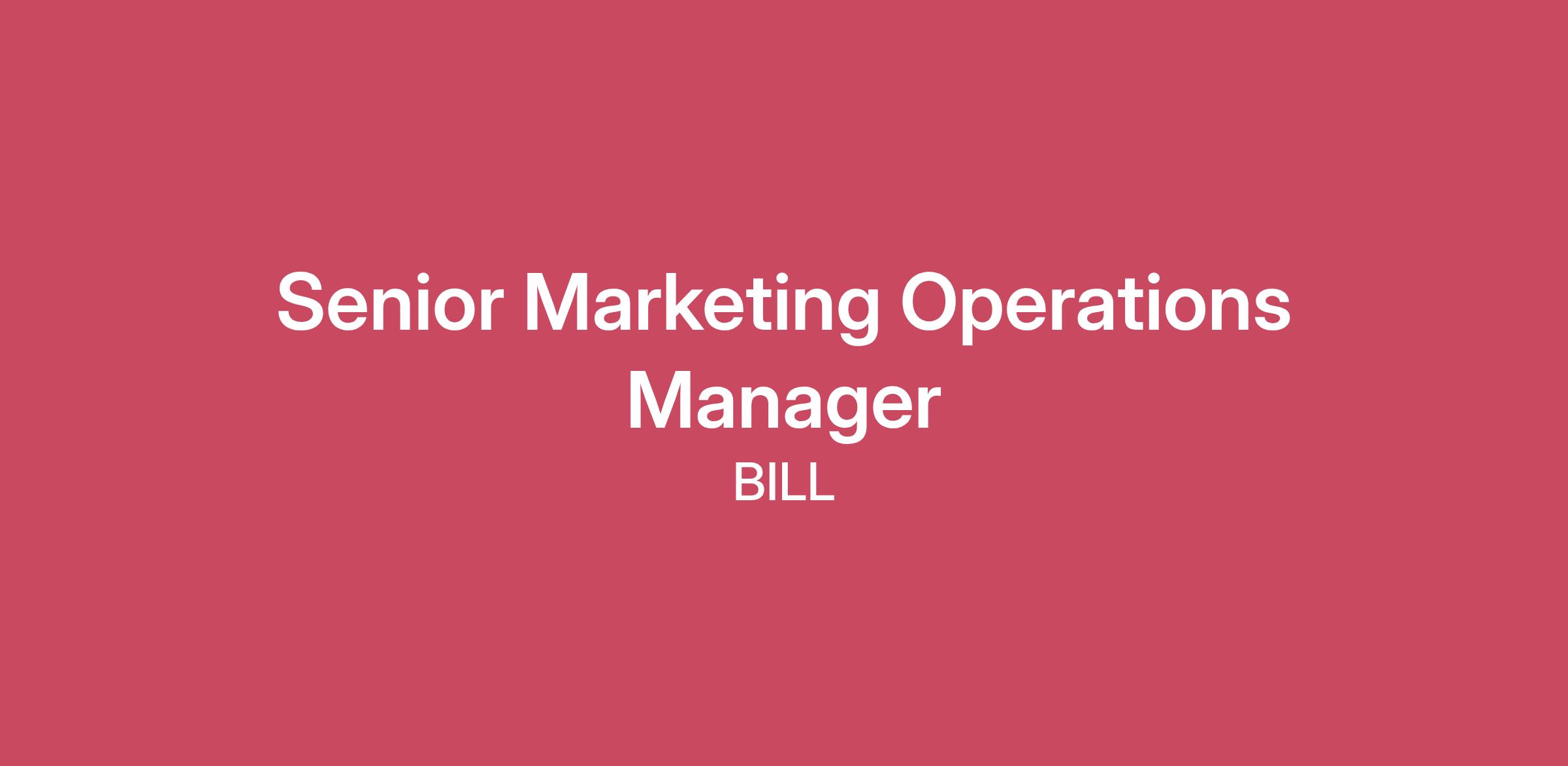 Innovate with purpose At BILL, we believe in empowering the businesses that drive our economy. By replacing outdated financial processes with innovative tools, we help businesses—from startups to established brands—make smarter decisions and gain control of their operations. And we don’t stop there: we’re creating the future of financial automation so businesses can spend more time on what matters. Working here means you become part of a vision-driven team that’s ready to tackle challenges and build cutting-edge solutions. We value purpose, drive, and curiosity—and we thrive in a fast-paced, ever-changing environment. Whether in one of our offices in San Jose, CA, Draper, UT, or working remotely, BILLders collaborate to deliver real impact for businesses that need more time in their busy weeks. BILL builds high performing teams and we seek to hire the best talent for every role. We're committed to building a workplace that fosters inclusion and diverse perspectives, valuing each person’s unique skills and experiences. We’d love to hear from you—you might be just what we’re looking for, whether in this role or another. ✨ Let’s give businesses more time for what matters.Make your impact within a rapidly growing Fintech Company BILL.com’s Go-To-Market (GTM) Operations team is the connective tissue across Marketing, Product-Led Growth (PLG), and Sales — building the infrastructure, processes, and programs that enable scalable, data-driven growth. We're focused on creating frictionless user journeys, accelerating platform adoption, and delivering personalized experiences across the customer lifecycle. We are currently investing in strengthening our core operational backbone to ensure our data is accurate, our systems are integrated, and our campaigns are executed with precision. We are looking for a Senior Marketing Operations Manager to serve as the architect and guardian of our marketing technology stack and processes. This person will work closely with GTM leadership to ensure efficient lead management, robust data governance, and seamless integration between our marketing automation platforms and CRM. This is a critical role that blends technical expertise, strategic process design, and data analysis — ensuring that our marketing engine runs efficiently and that we can accurately measure the impact of our GTM initiatives. Key Responsibilities MarTech Stack Management: Oversee the administration, integration, and optimization of the marketing technology stack (e.g., Marketing Automation, CDP, Direct Mail, etc.) to ensure scalability and performance. Lead Lifecycle Management: Own the end-to-end lead lifecycle, including scoring models, routing logic, and hand-offs between Marketing and Sales (SDR/AE) to ensure no lead is left behind. Data Integrity & Governance: Collaborate with Data Engineering and RevOps to maintain a clean, unified data ecosystem. Define and enforce data standards, enrichment processes, and compliance (GDPR/CCPA) rules. Campaign Operations: Design and document standard operating procedures (SOPs) for campaign execution, ensuring consistent tracking, tagging, and attribution across all channels. Reporting & Analytics: Partner with the Analytics team to build and maintain dashboards that track campaign performance, pipeline attribution, and ROI, providing actionable insights to marketing stakeholders. Process Optimization: Proactively identify operational gaps, bottlenecks, and inefficiencies in our GTM motion and design scalable solutions to address them. Cross-Functional Alignment: Act as a primary liaison between Marketing, Sales Operations, and Business Systems to align on roadmap priorities and technical requirements. We’d love to chat if you have: Required Experience 5–7 years of experience in Marketing Operations, Revenue Operations, or a similar technical marketing role. Deep proficiency with Marketing Automation Platforms (Marketo, HubSpot, or Inflection.io) and CRM systems (Salesforce). Strong understanding of B2B marketing funnels, lead scoring models, and attribution methodologies. Experience managing data workflows, including list segmentation, data enrichment, and database hygiene. Ability to translate complex business requirements into technical specifications and process diagrams. Experience working with CDPs (Segment, etc.) and data activation workflows is a strong plus. Preferred Qualifications Certification in major Marketing Automation Platforms (e.g., Marketo Certified Expert). Experience in a high-growth SaaS or Fintech environment. Proficiency with BI/Analytics tools (Looker, Tableau) and SQL basics. Familiarity with PLG motions and how they intersect with traditional inbound/outbound sales motions. Core Competencies Systems Thinking: Sees how tools, data, and teams connect to create a cohesive operational ecosystem. Analytical Mindset: Loves digging into data to find the root cause of issues and proof of performance. Clarity & Documentation: Excellent at simplifying complexity into clean, structured requirements and process maps. Bias for Action: Operates proactively and independently to drive progress with a detail-oriented mindset. The estimated salary range for this role is noted below for our San Jose based role. Our ranges for each role and job level are based on a variety of factors including candidate experience, expertise, and geographic location and may vary from the amounts listed above. The role is also eligible for a competitive benefits package that includes: medical, dental, vision, life and disability insurance, 401(k) retirement plan, flexible spending & health savings account, paid holidays, paid time off, and other company benefits.San Jose pay range$131,000—$164,300 USDThe estimated base salary range for this role is noted below for our office location in Draper, UT. Additionally, this role is eligible to participate in BILL’s bonus and equity plan. Our ranges for each role and job level are 