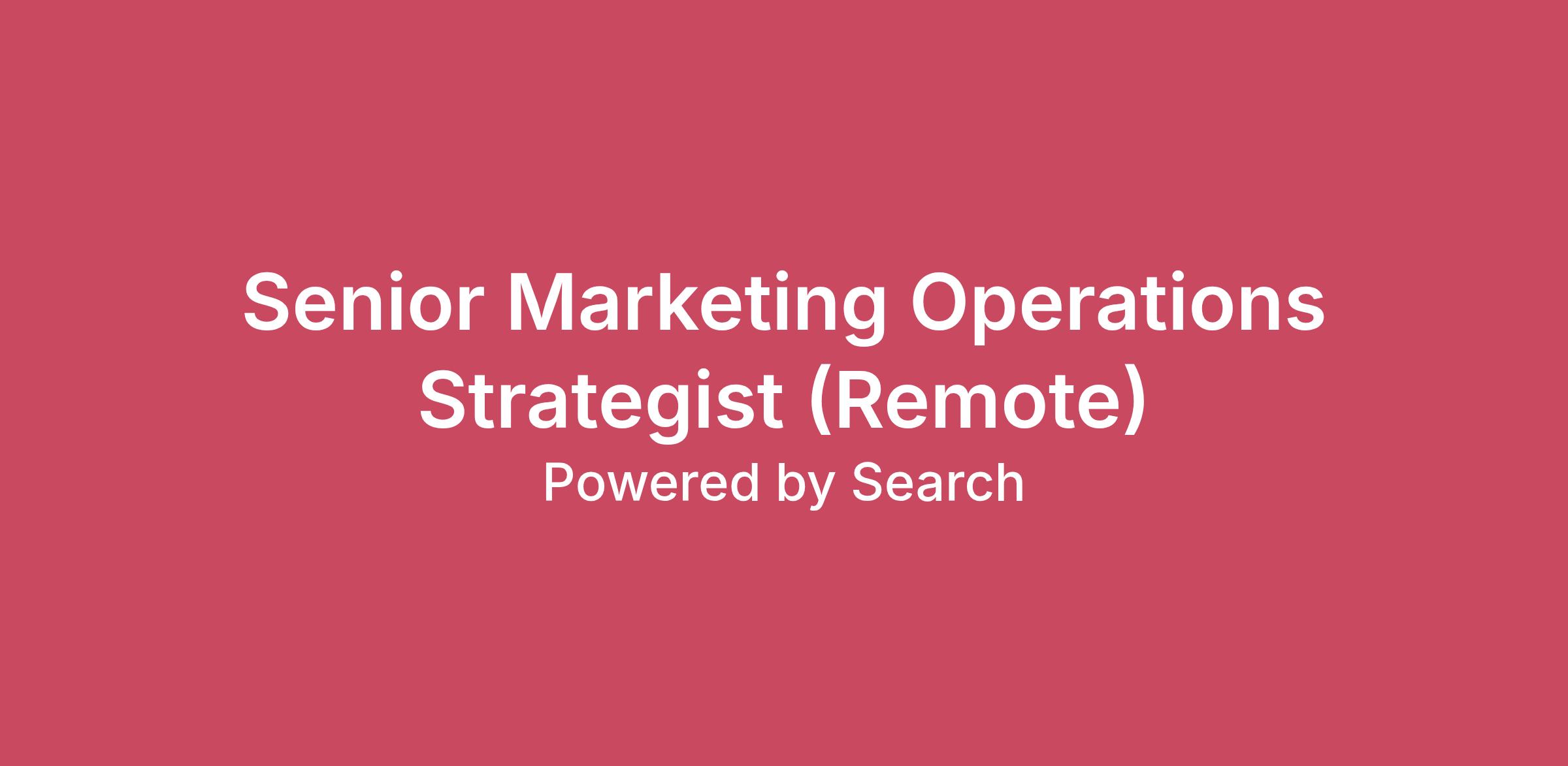 Do you worry about B2B SaaS teams drowning in inaccurate jerry-rigged data and not being able to connect the dots between marketing and sales?Do you live and breathe Salesforce, HubSpot, and spreadsheets?You are the missing piece we’re looking for. In this role, you’ll help our B2B SaaS clients become unstoppable through marketing that drives predictable growth.At Powered by Search, we partner with B2B SaaS clients ranging from startups to Cloud 100 to scale demos, trials, and sales on demand with our proven Predictable Growth Methodology.If you have more to offer than your agency or in-house environment can provide, we’re looking for you. Especially if you’re a curious, coachable, and capable team player who can join us as our next Senior Marketing Operations Strategist.About Powered by SearchWe are on a mission to be the best in the world at SaaS marketing — doing work we love, with people we like, how we want. As trusted advisors to the world's fastest-growing B2B SaaS and tech companies, we're rated 5/5 ★★★★★ on Glassdoor, with 99% of our team recommending us to peers.We are a global team of fully distributed and remote-first consultants in 8+ countries across North America, Europe, and Asia Pacific.Our team lives by our core values:Always be in it to win itGive a shitBe obsessed with serving othersPractice a growth mindsetWhen we fail, don’t lose the lessonYou’re a great fit for this role if:You have 3+ years of hands-on experience in Marketing Operations or Revenue Operations within B2B SaaS, and a successful track record of achieving or exceeding MQLs, SQL, and pipeline targets from your own hands-on efforts.You're a natural problem solver who's strategic, analytical, and resourceful. You figure out how to fix the problem instead of looking for someone to blame. Your co-workers see you as a roll-up-your-sleeves and 'get it done' person.You have excellent written, verbal, and video communication skills working directly with clients. You lead meetings, give presentations, and drive projects forward.You’re an advanced user of CRMs & Marketing Operations tools common to B2B SaaS teams including Salesforce and HubSpot. You’re skilled at setting up, migrating, troubleshooting, and optimizing the finest details of these platforms.You’re comfortable with large data sets to connect marketing data with insightful and actionable narratives, visualizations, and forecasts. You see yourself as an Excel pro.Experience collaborating cross-functionally with Paid Media, SEO, and Content teams for full-funnel attribution and pipeline optimization.Experience with BI or data visualization tools is a plus (Databox, Power BI, Tableau)Experience with ABM platforms (6Sense, DemandBase) and enrichment tools (Clay, Keyplay) is a plus.Experience with Dreamdata and Hockeystack is a plus.About the roleExpected OutcomesThe Senior Marketing Operations Strategist will report to the VP of Operations to achieve the company’s long-term goals by building scalable, high-integrity revenue systems that drive predictable growth for our clients.Retain and grow a portfolio of B2B SaaS clients through hands-on strategic marketing operations consulting and implementation. This includes CRM tooling, pipeline analysis, email nurture, and full-funnel executive level reporting.Own full funnel forecasts, scorecards, and hypotheses for increasing marketing attributed closed-won revenue.Lead client communication with solid executive presence, reporting, and expectations management.Work with other pods and team members to increase retention, drive referrals, cross-sell, and upsell.You will **not** need to own SEO and Paid Media (Search & Social) campaigns yourself. Instead, you’ll work with dedicated consultants and their pod Directors in a dotted-line fashion.Day-to-Day ResponsibilitiesRetain and grow a portfolio of 4–7 B2B SaaS clientsOngoing consulting with key client stakeholders to deep dive into pipeline data and create growth scorecards, forecasts, and roadmaps.Marketing Operations and Revenue Operations management including data sanitization, full-funnel tracking, and automation hygiene.Deploy marketing automation and lifecycle email marketing campaigns to nurture and reactivate pipeline.Consult on website journeys including messaging, content, landing pages, and conversion paths.Advise on website positioning & messaging to clarify who client’s serve, the problems they solve, and how their solution can help ideal customers.Strategic hands-on ownership of Marketing Operations and Revenue Operations systems, including but not limited to:CRMs including HubSpot & SalesforceAttribution and tracking infrastructure across Google, LinkedIn, and MetaLifecycle stage architecture and funnel governanceDashboarding and data visualizationPerks & BenefitsFully remote role5 weeks of paid time offCompetitive compensation plus quarterly bonusesFlexible working hours (requires 4 overlap hours with 9 am–5 pm EST)Paid training (school, events, conferences)For full-time Canadian residents only: comprehensive health, dental, and eye careAt Powered by Search, you'll have direct client access, strategic autonomy, and the support of world-class SaaS marketing experts.Ready to level up? Join the team that's transforming how B2B SaaS companies achieve Predictable Growth.